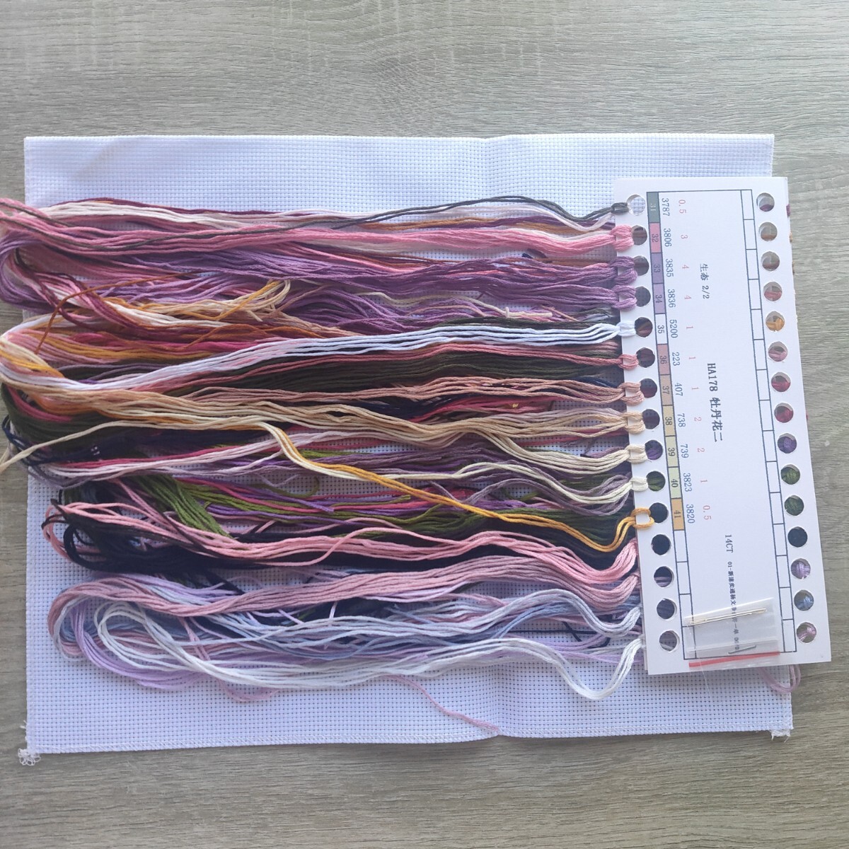 刺繍糸は余分に見積もって入っていますが、製作中もし足りなくなった場合は、ご自身でご用意ください。DMCの糸番号に対応しています。検品のため1度開封しています。