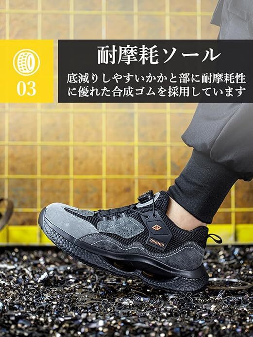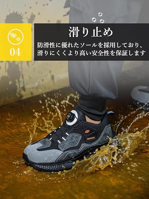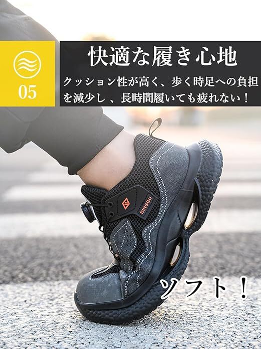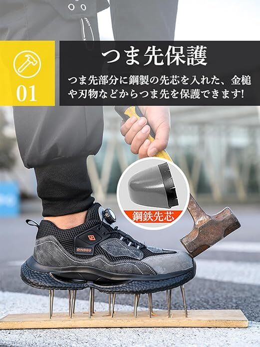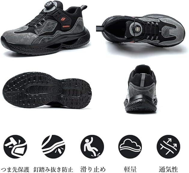 ダイヤル式安全靴 作業靴 あんぜん靴 軽量 通気性 セーフティシューズ 鋼製先芯入り 厚底 防滑 グレー サイズ:27.5cm