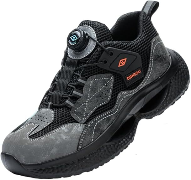 【便利なダイヤル式紐】安全靴はダイヤル式の紐デザインで、片手でダイヤル操作することで最適なフィット感が瞬時に得られます。楽に靴を履く脱ぐことができます。