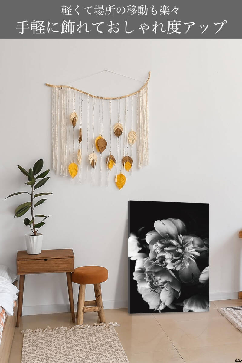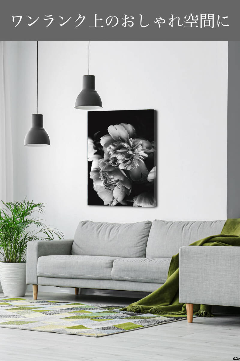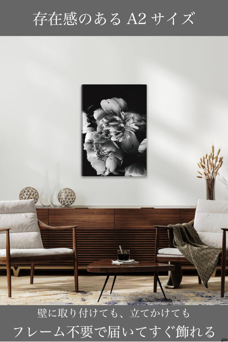 花の写真が空間を美しく彩り、リビングや寝室、書斎など様々な部屋のアクセントとして活躍します。