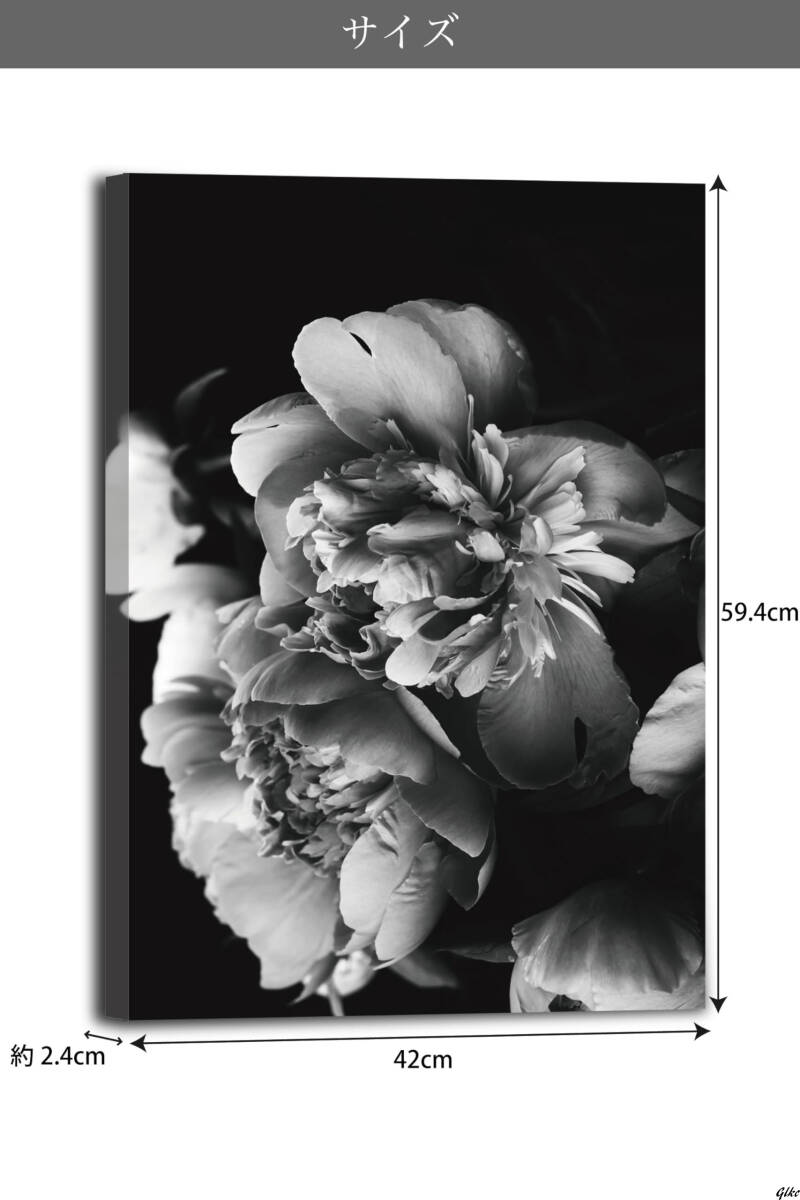 【北欧モノトーン花柄キャンバスパネル】 アートパネル モノトーン 縦59.4cm×横42cm 壁掛け インテリア装飾 北欧 フック付き
