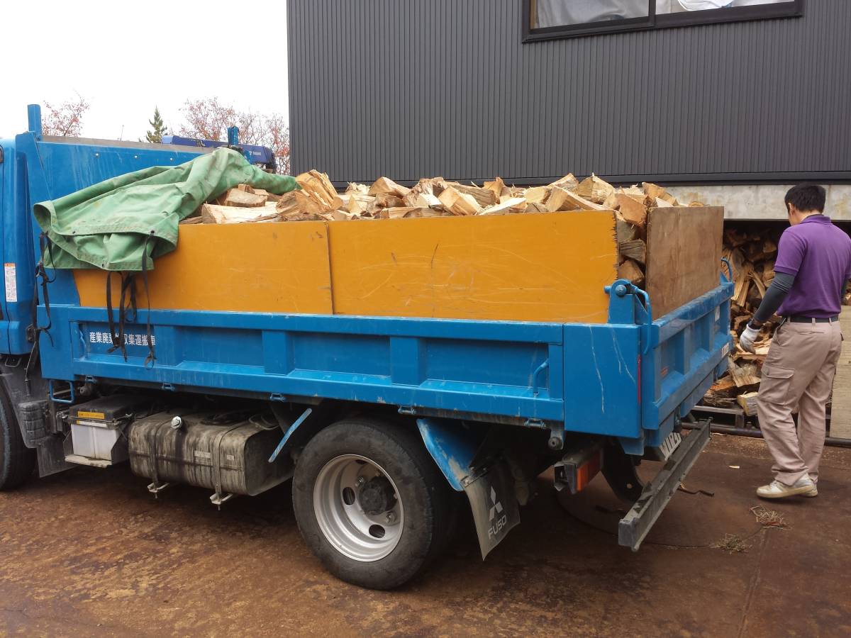 商品はナラ薪4立米、半燥品になります。