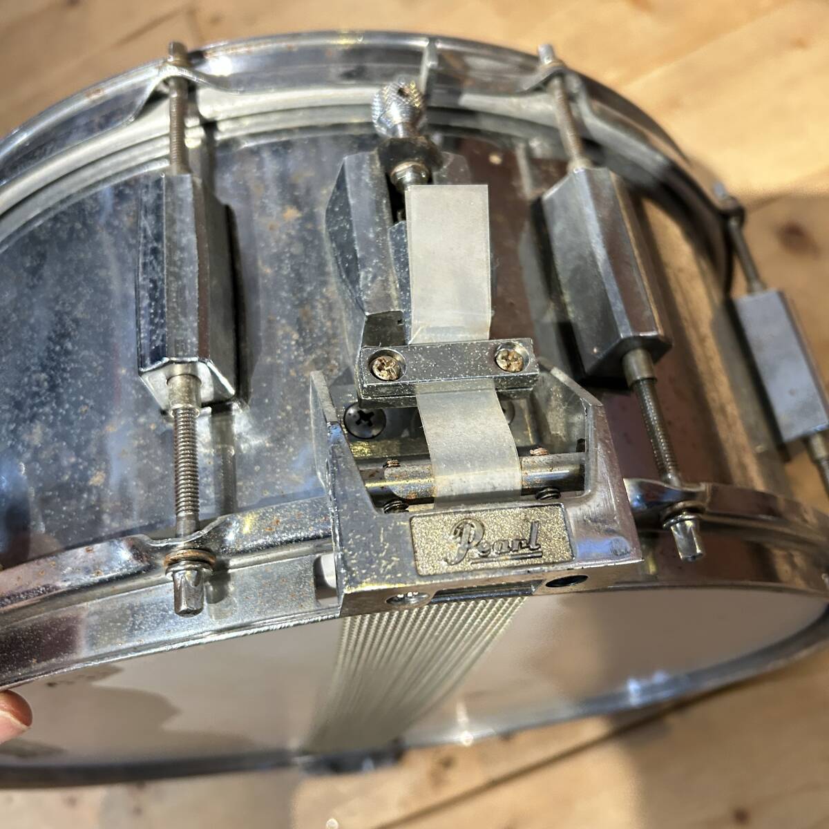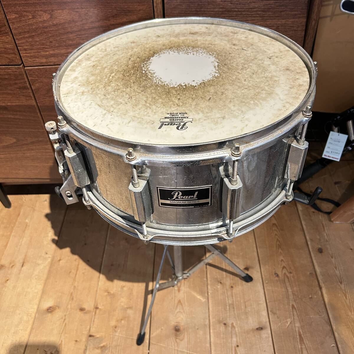 80S~ VINTAGE PEARL / パール MAGNUM SERIES マグナムシリーズ スネアドラム 14インチ COATED AMBASSADOR REMO USED
