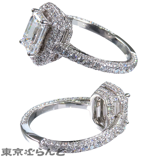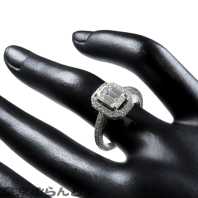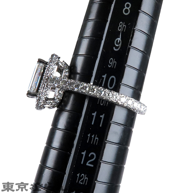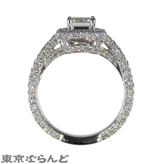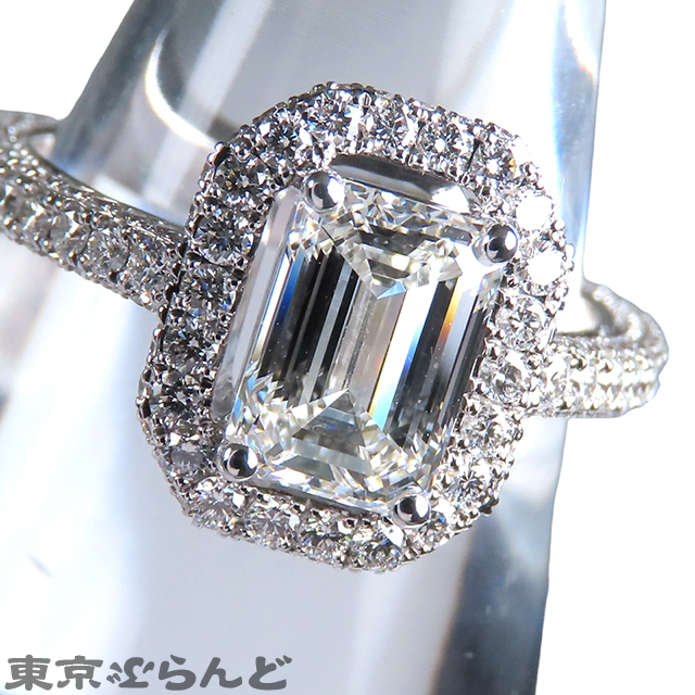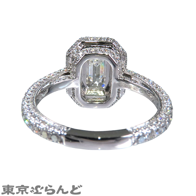 コンステレーション エメラルドカット ダイヤモンド エンゲージメント リング 10.5号相当 1.30ct G VVS2 パヴェ バンド 箱・証明書付き