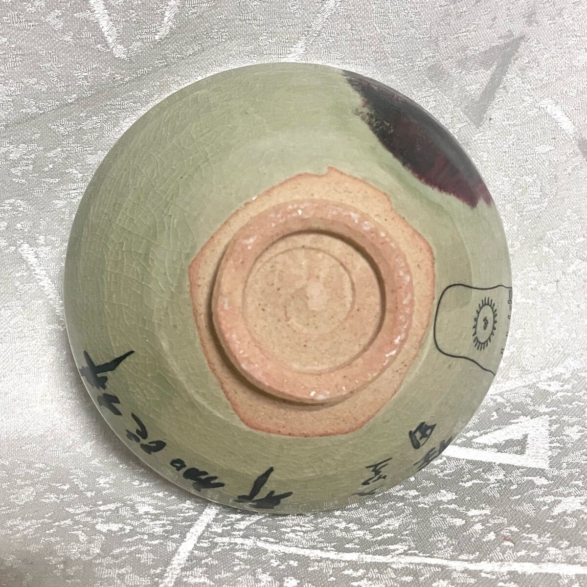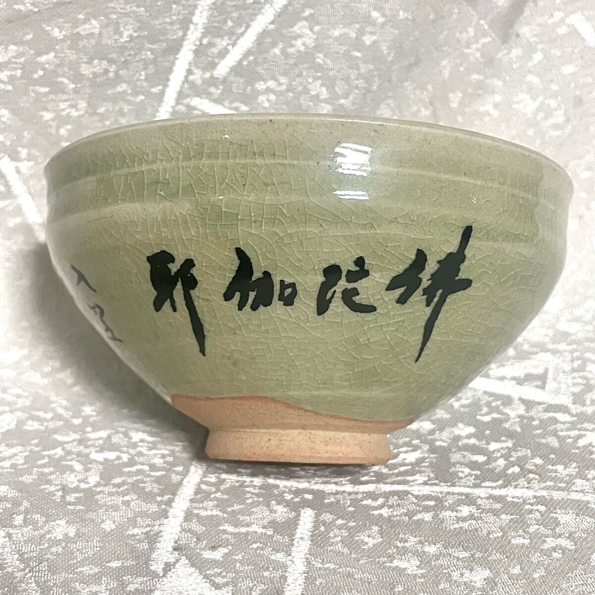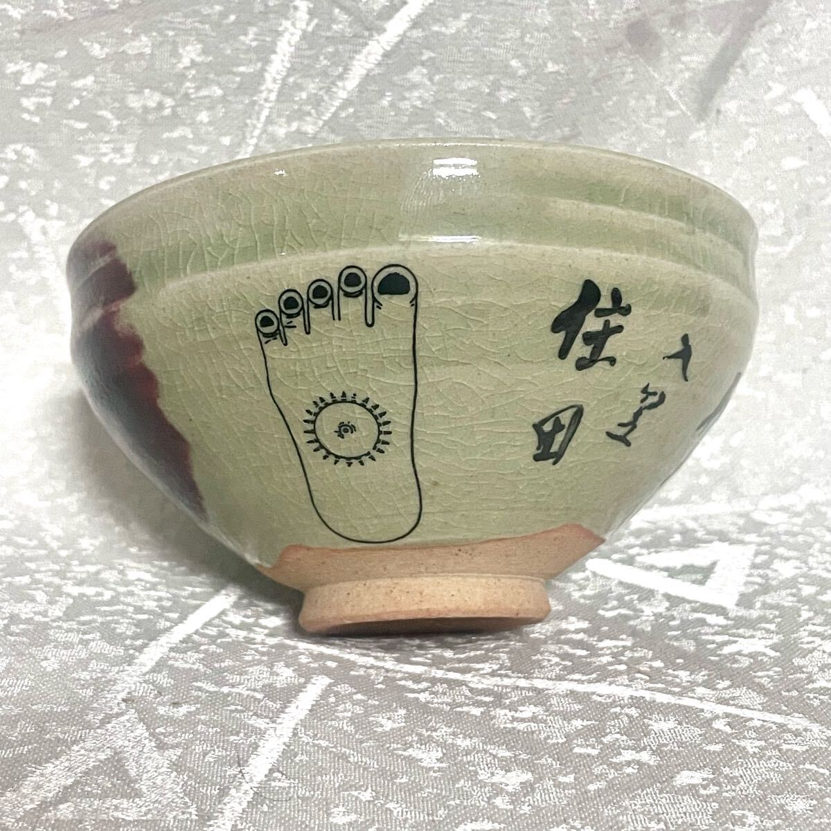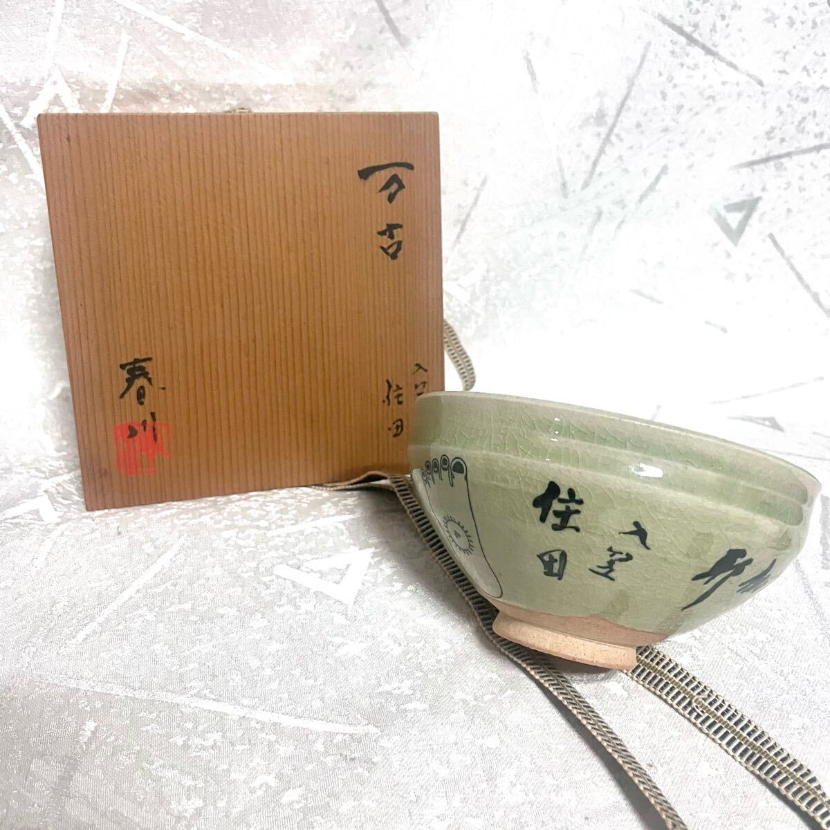 未使用【万古焼】抹茶茶碗 入笠 住田 春川 仏足石 佛 耶伽 ★共箱あり