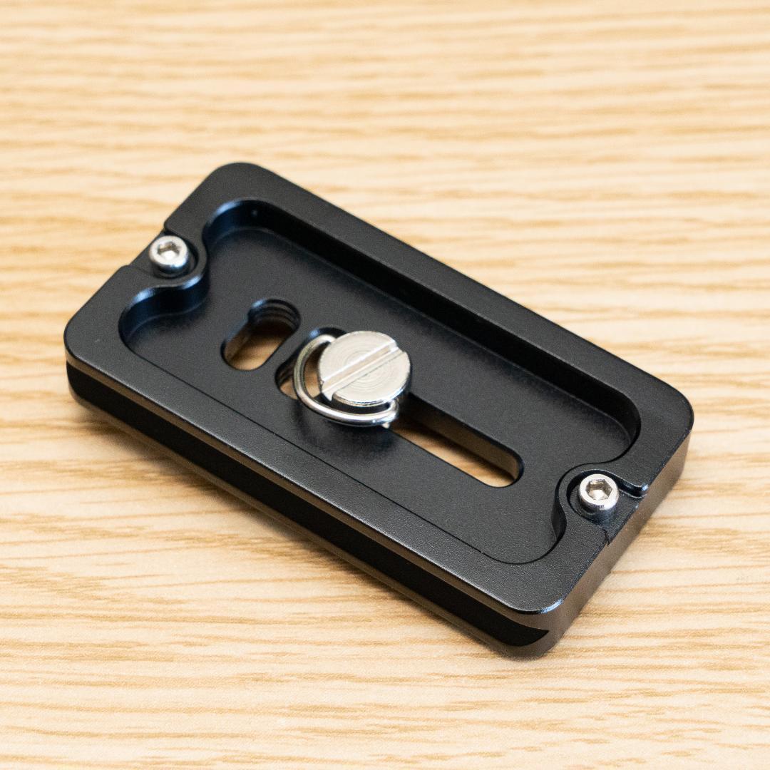 カメラ側に取り付けるアルカスイス規格互換プレートです。