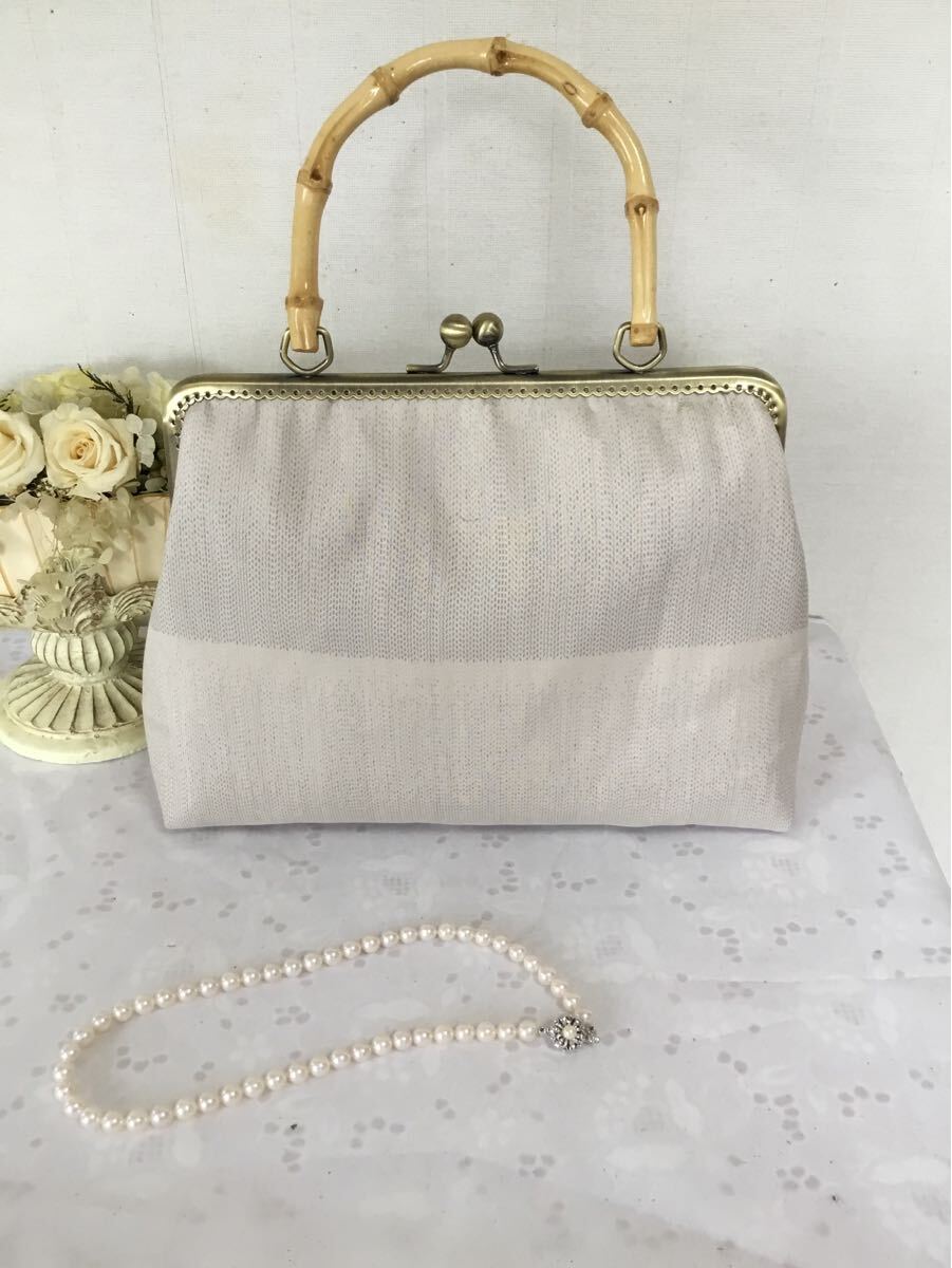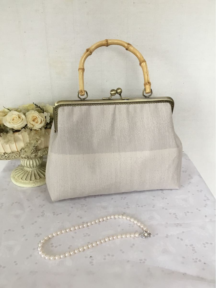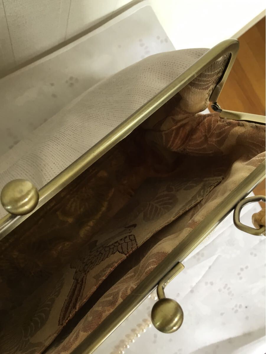 大島紬で洋服でも着物でも使えるがま口バッグを作りました。
