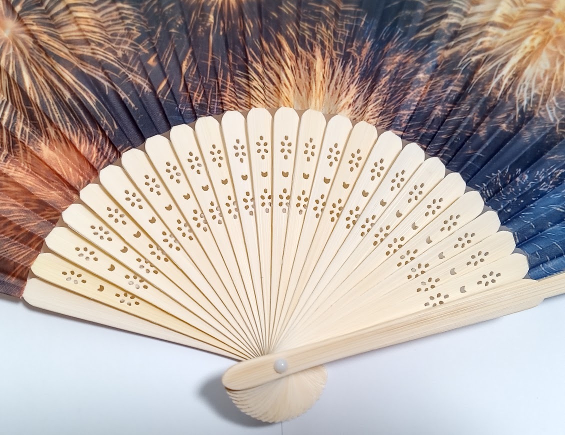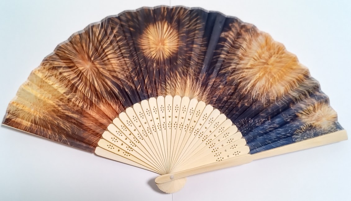 ★最後の1点です★すぐに/土日祝も発送します【★特級品 リアル 花火 扇子 布タイプ 21㎝ 天然竹使用】はなび 和柄 夏 扇子 うちわ 団扇