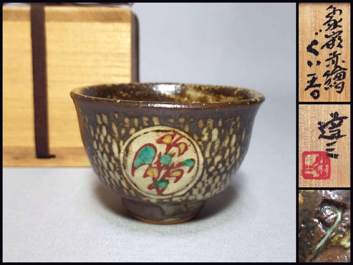 TH27 益子焼 酒器 人間国宝 島岡達三 造 象嵌赤絵 ぐい呑 盃 共箱