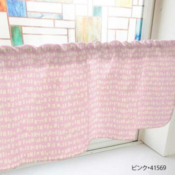 カフェカーテン 四角のボーダー 1000×450mm ピンク・41569