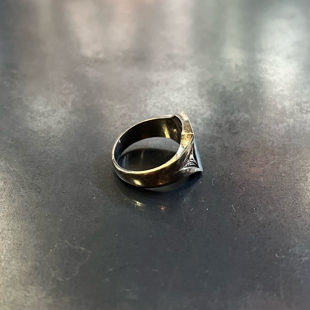 海外で買い付けたオールドキャラクターフォーム・旧字体エングレービングデザインのシルバーリングです。