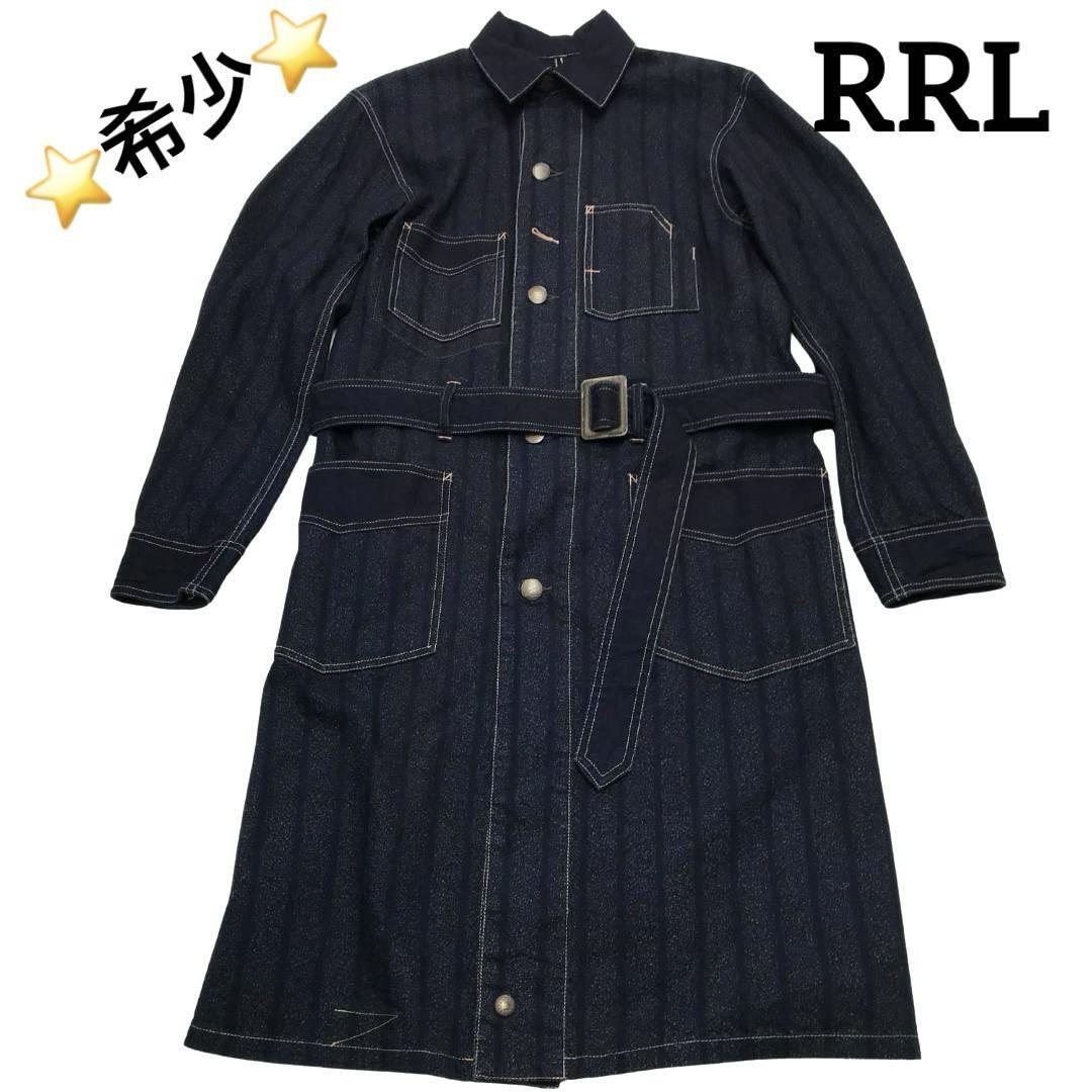 RRL Double RL ダブルアールエル RALPH LAUREN ラルフローレン リミテッドエディション ショップコート ヴィンテージ ストライプ インディゴ デニム ロング トレンチ ビンテージ カバーオール Sサイズ メンズ 希少 激レア 入手困難