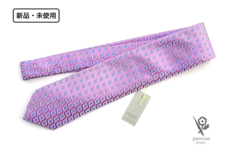 送料無料★新品|未使用|ペンローズ ロンドン|penrose london|スクエア柄ネクタイ|Light Purple Base Square