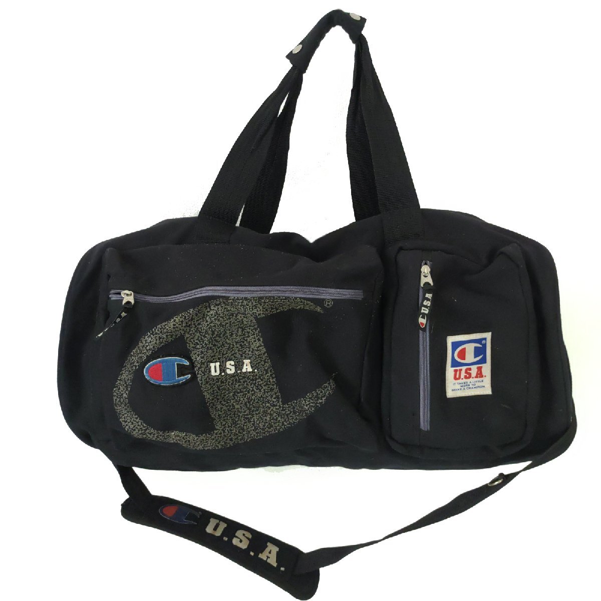 (^w^)b champion USA チャンピオン 80s 90s ビンテージ ボストンバッグ 旅行 カバン スポーツ キャンプ 遠征 遠出 大容量 軽量 黒 OB0656DD