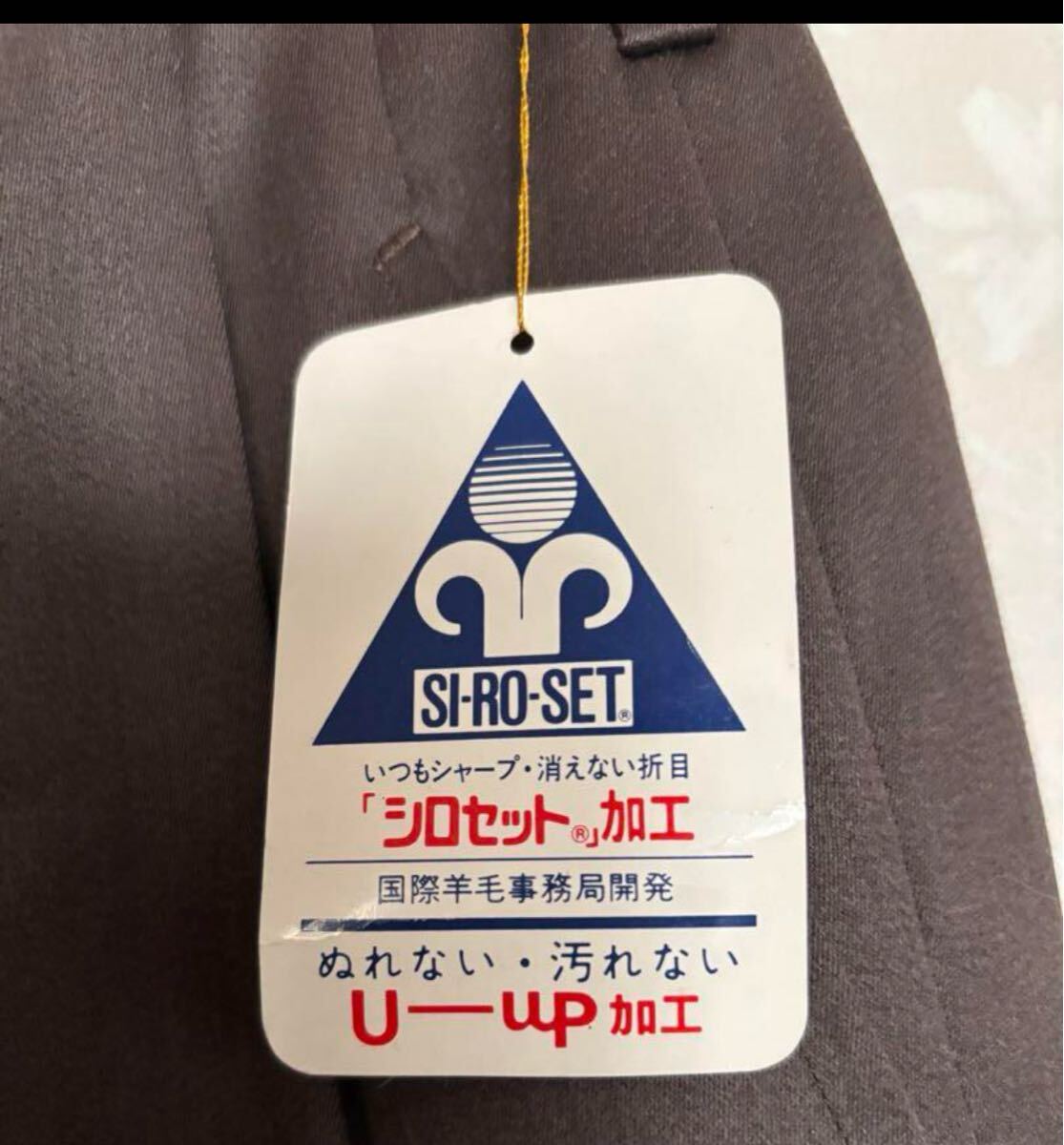 このウールパンツの折り目にはIWS 国際羊毛事務局が開発したシロセット加工が採用されています、