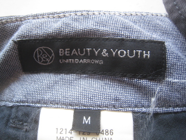 美品!!ユナイテッドアローズ UNITED ARROWS BEAUTY&YOUTH*ドローコード入り コットンイージーパンツ M ビューティ&ユース ダークグレー
