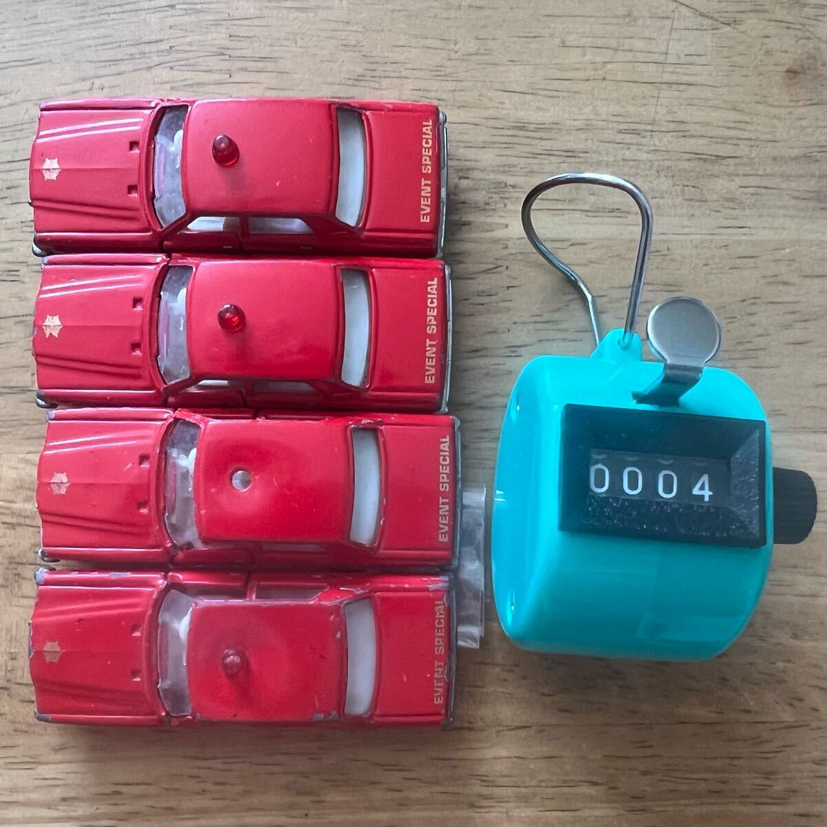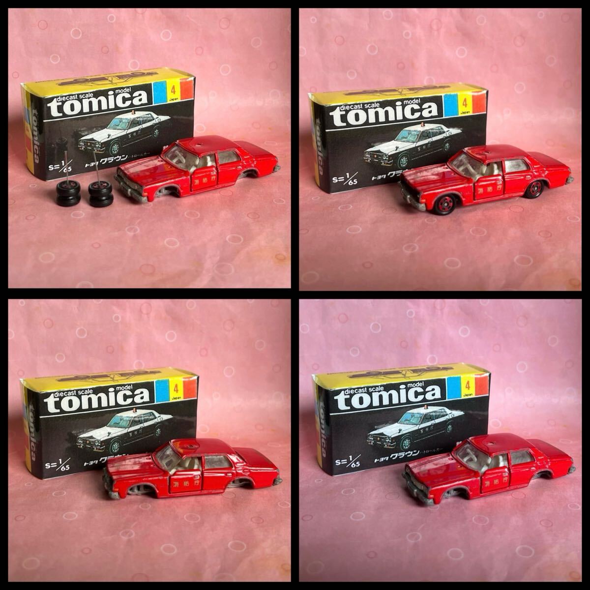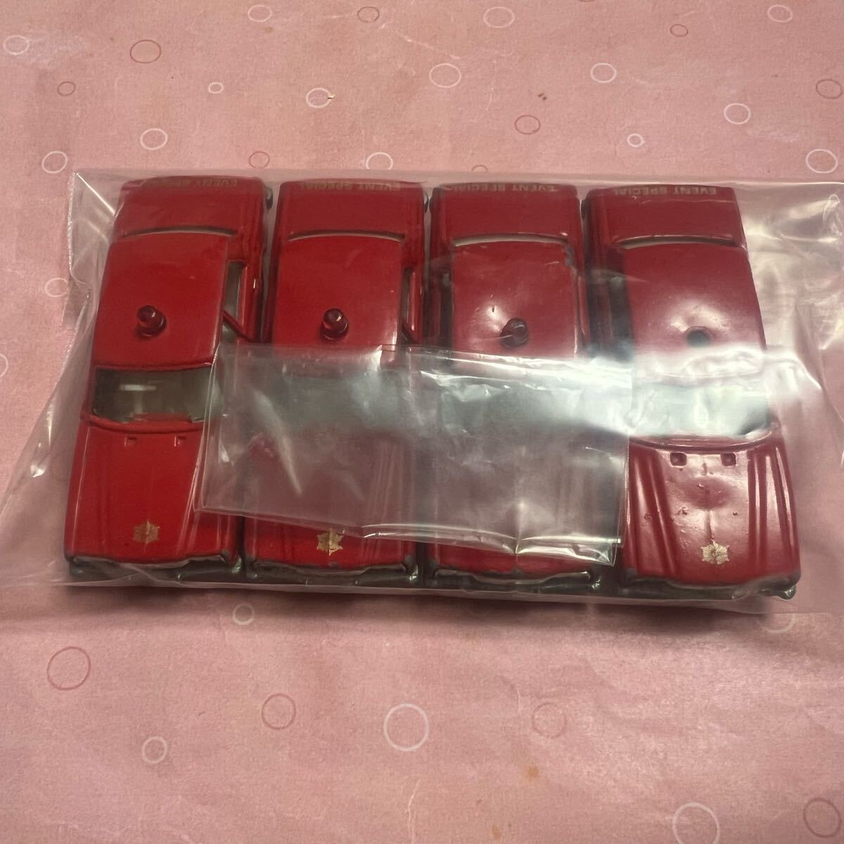 ●トミカ27-3-8 トヨタクラウンファイアーチーフカー 中国製 【値下げ交渉大歓迎】カスタムベース 破損品ジャンク品4台 カタストロフィ