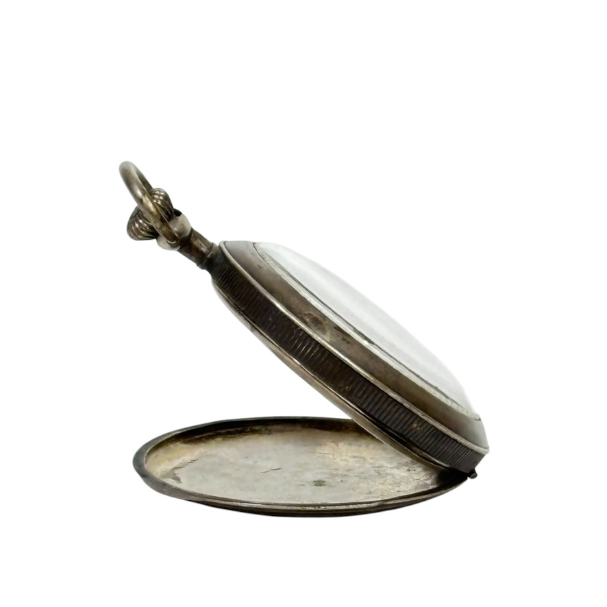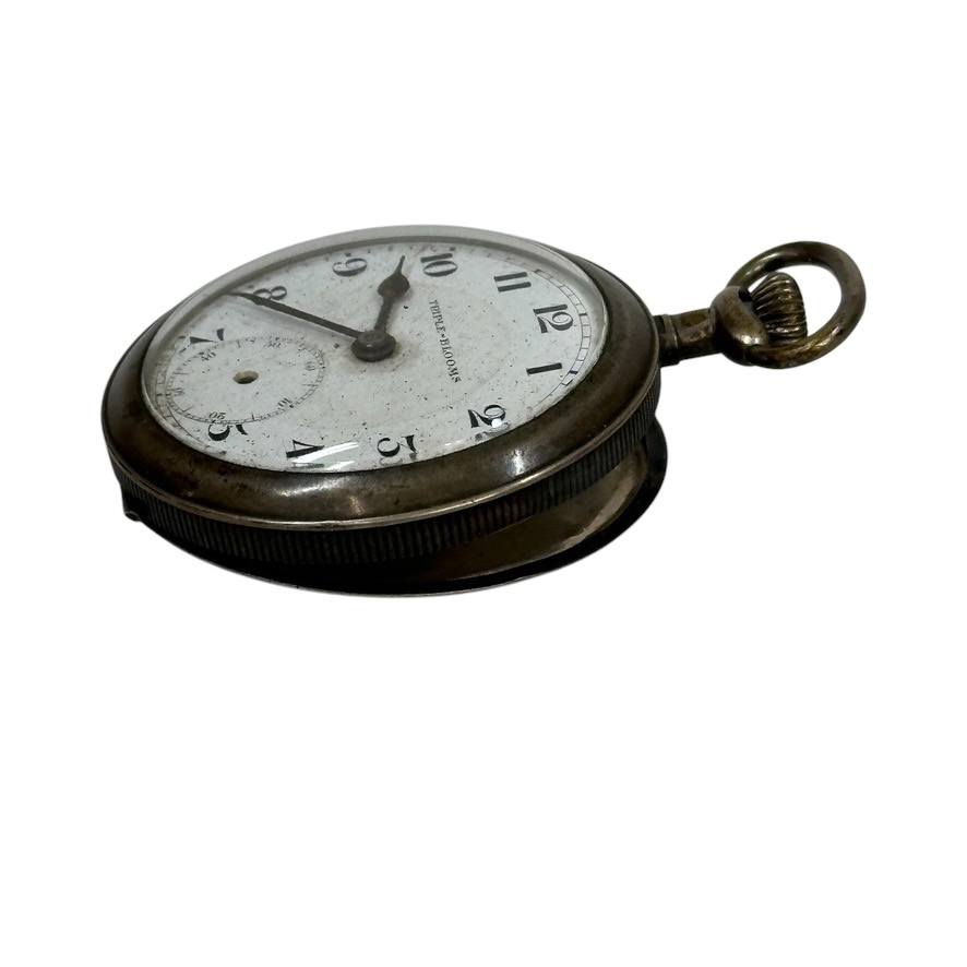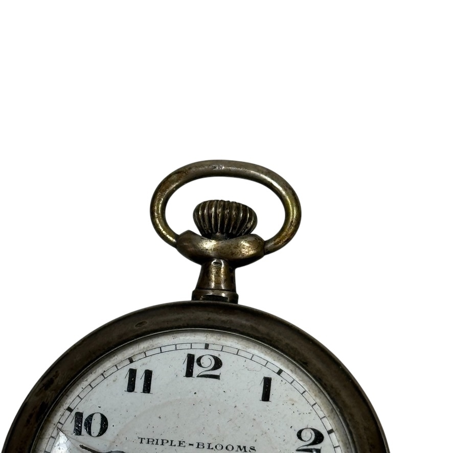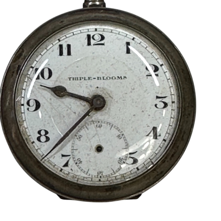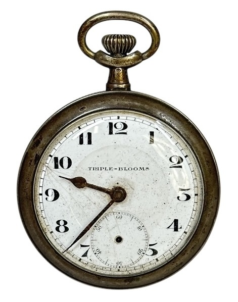 昭和ビンテージ 鶴巻時計店英工舎 TRIPLE-BLOOMS 銀製 機械式懐中時計 手巻き式 0.800刻印有 1950年代 要修理品 UYK704
