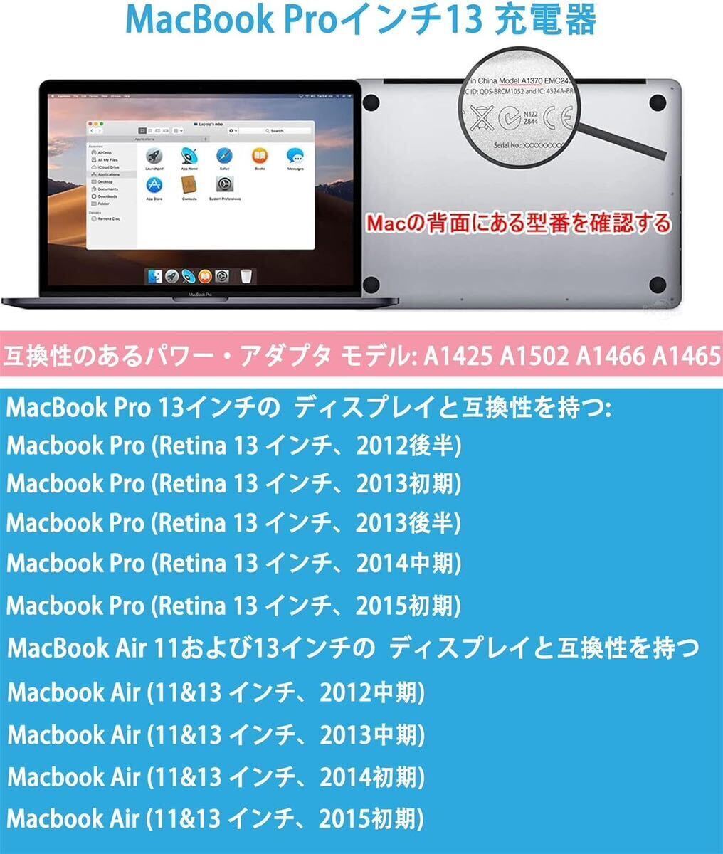 【アップルMacbook Pro Mag 2 T型 充電器】アダプタは2012 中期以降に発売されるアップル Macbook Pro/Air 13 インチに適用します。モデル番号: A1466 / A1465 / A1436 / A1435 / A1425 / A1502。