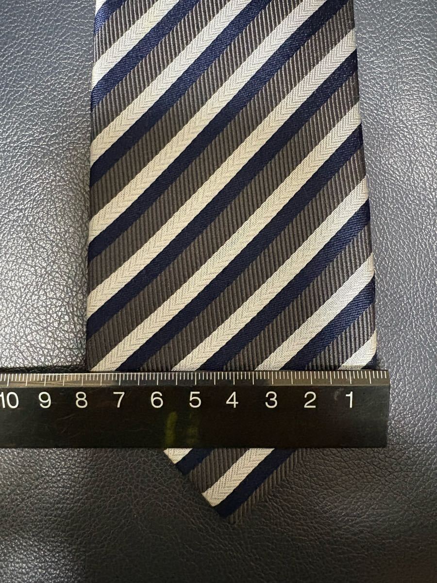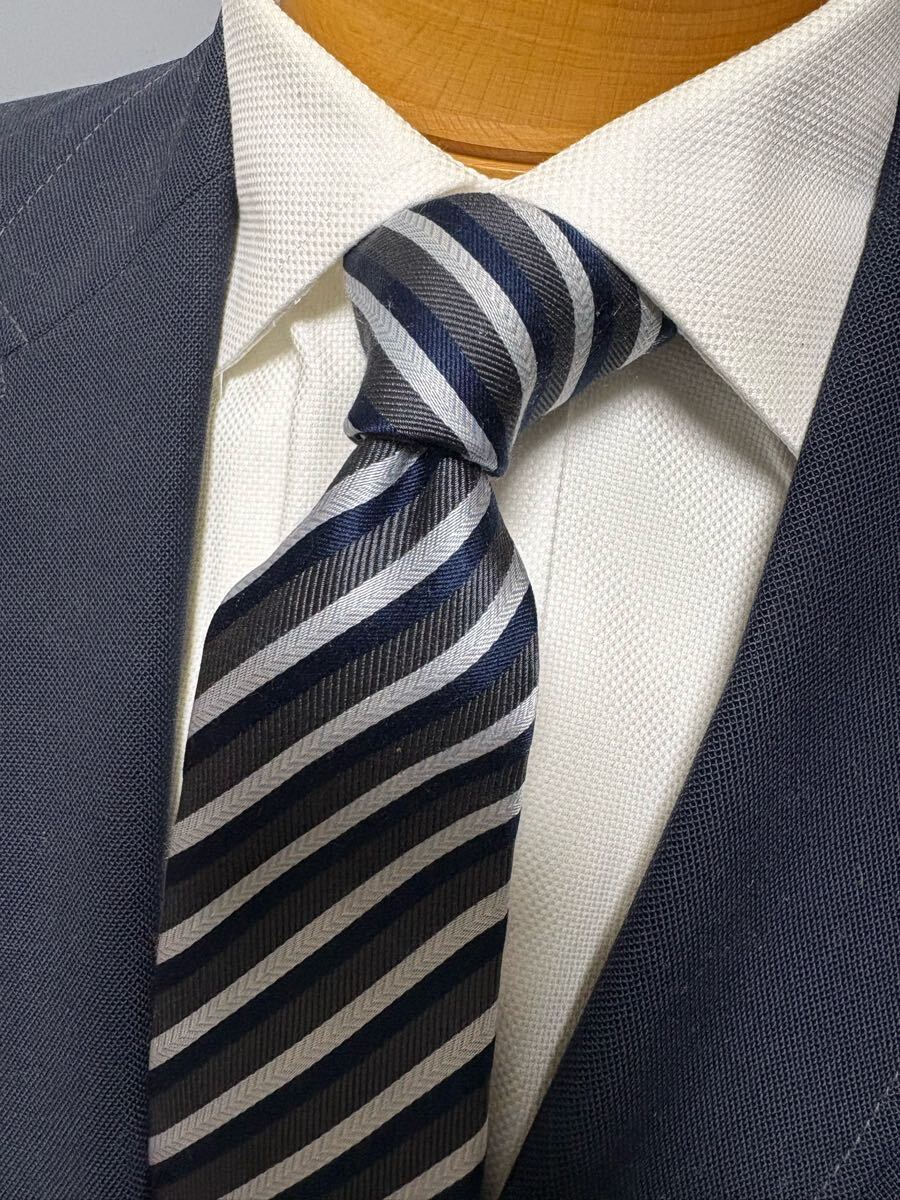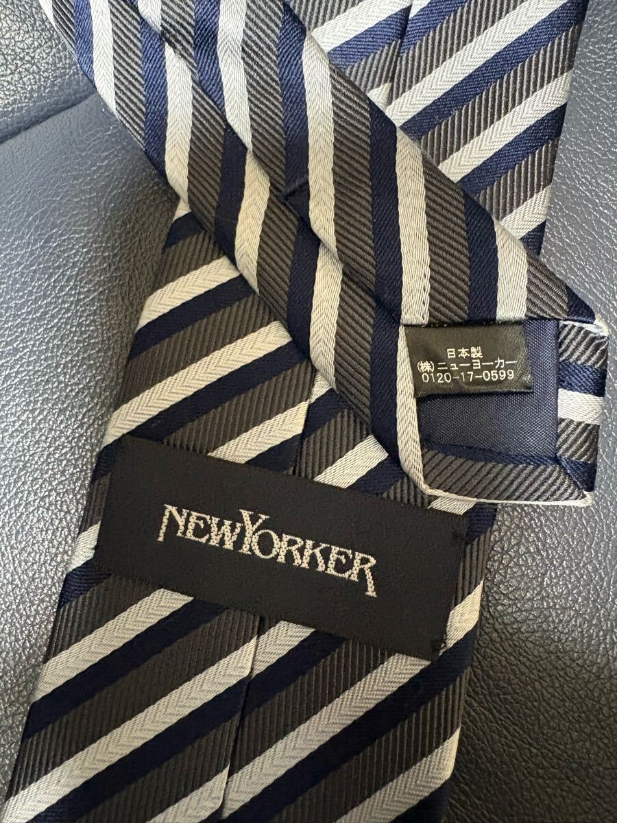 【美品】ニューヨーカーストライプネクタイ 日本製大剣約8cm ネイビー基調 シルク 2504
