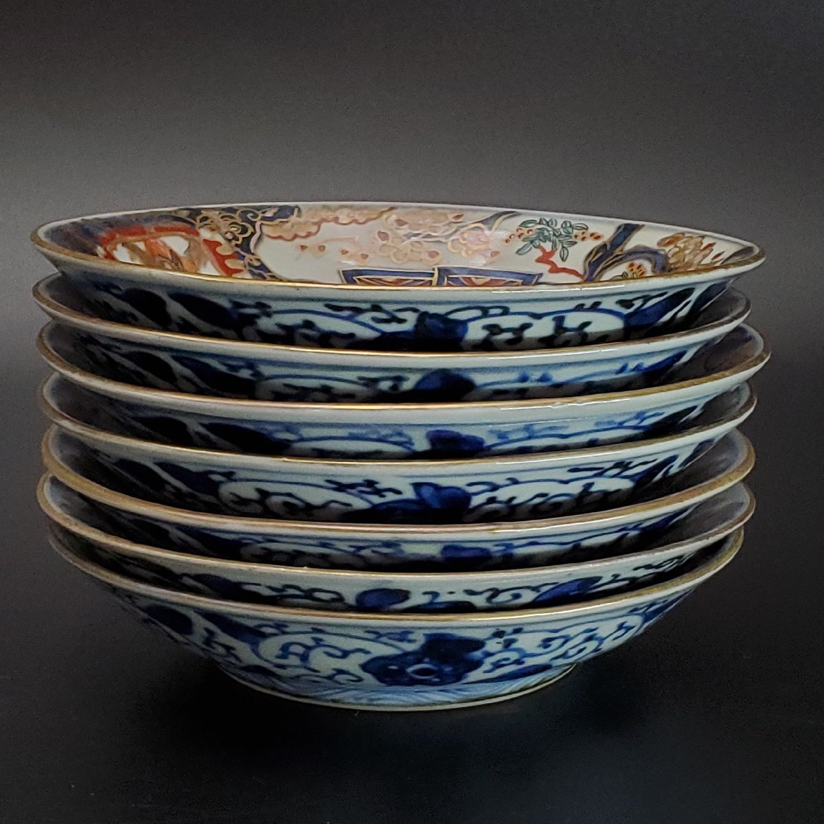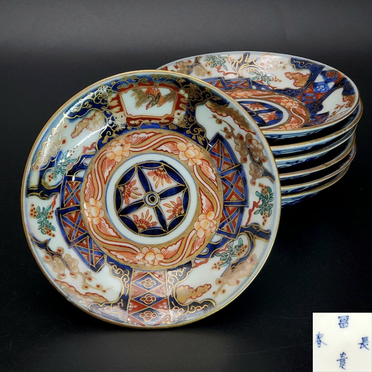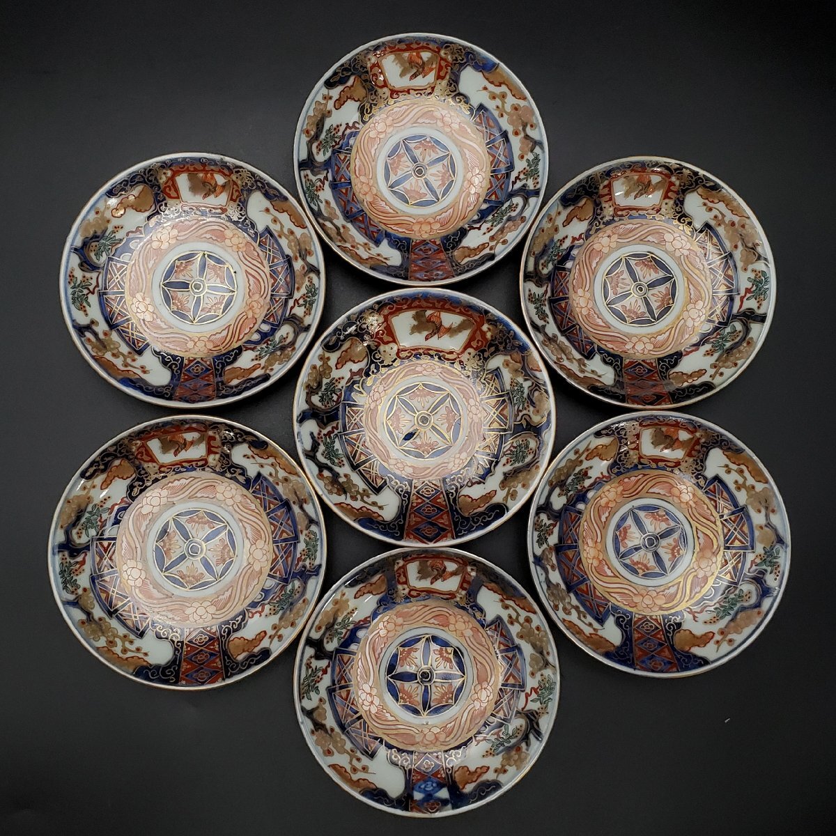 【宝蔵】古伊万里 富貴長春 金襴手小皿 7客 約11cm 懐石道具 ①