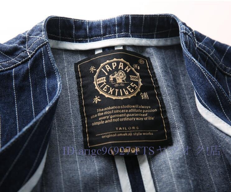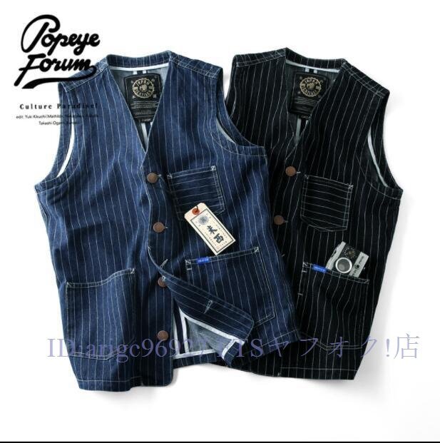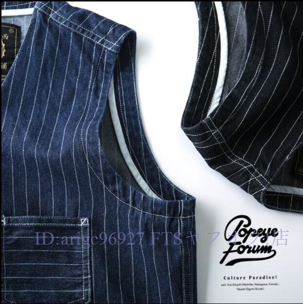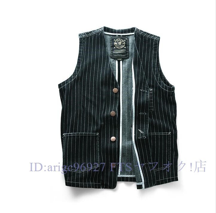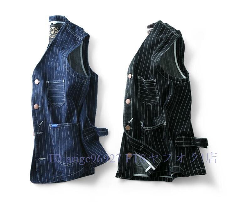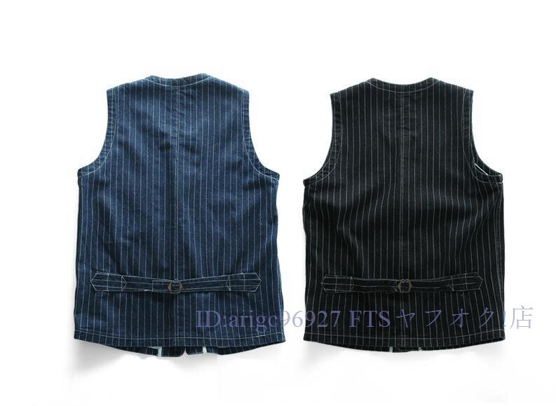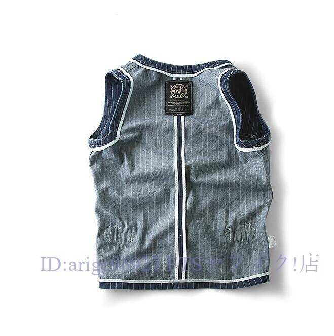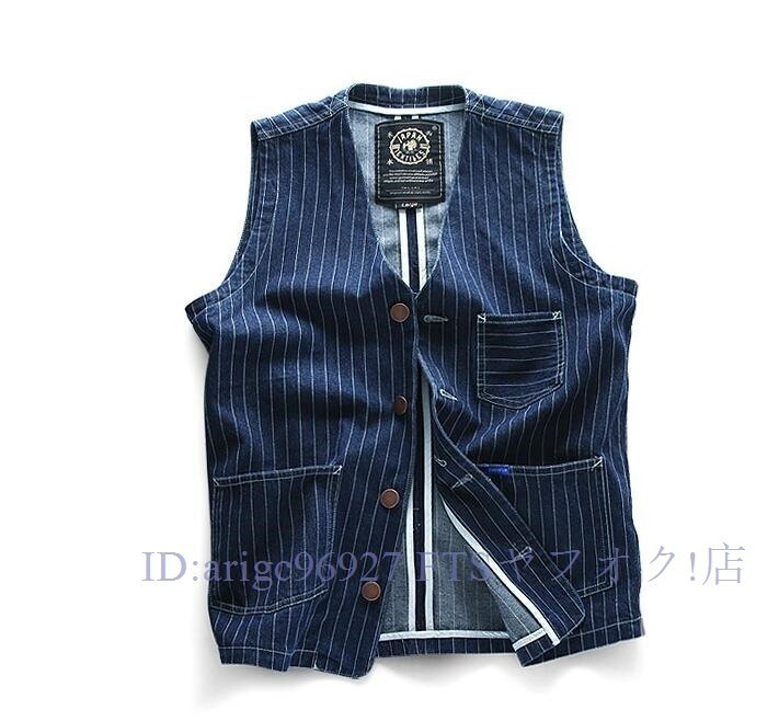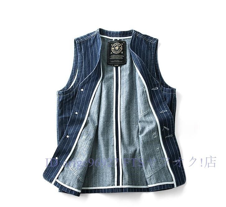 B1353☆新品レトロ ヴィンテージ仕様 ストライプ カウボーイ インディゴ デニム ジレベスト サイズM~2XL メンズ 大きいサイズ