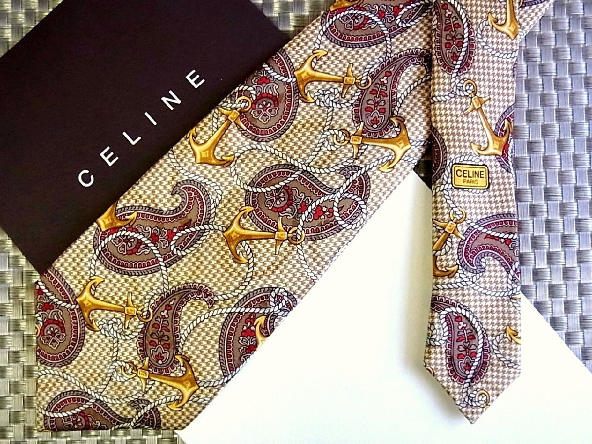 ★RB3818★【ペイズリー イカリ ロープ 柄】セリーヌ【美品】ネクタイ