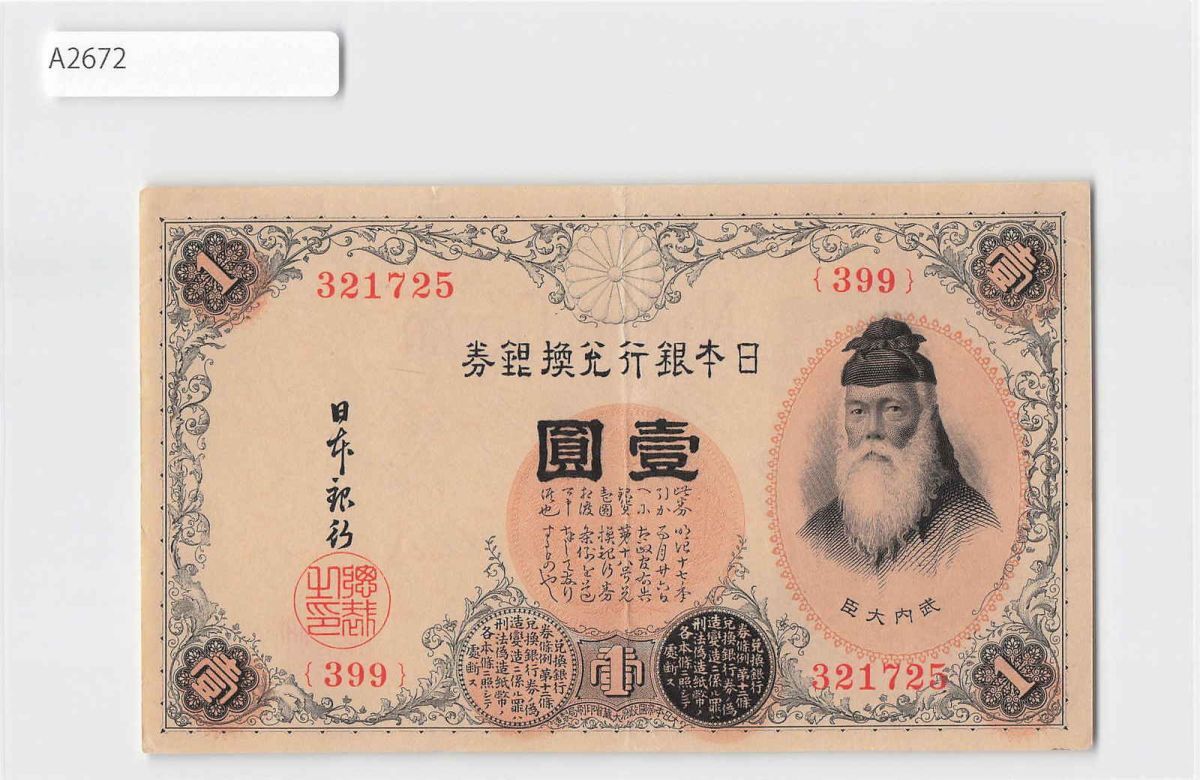 *[令]日本紙幣 1圓(1919)[A2672]7f9