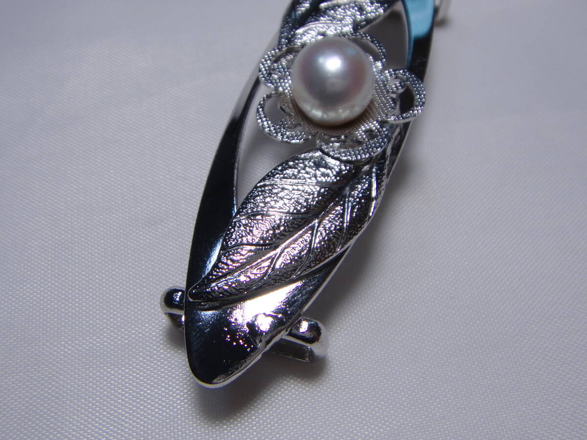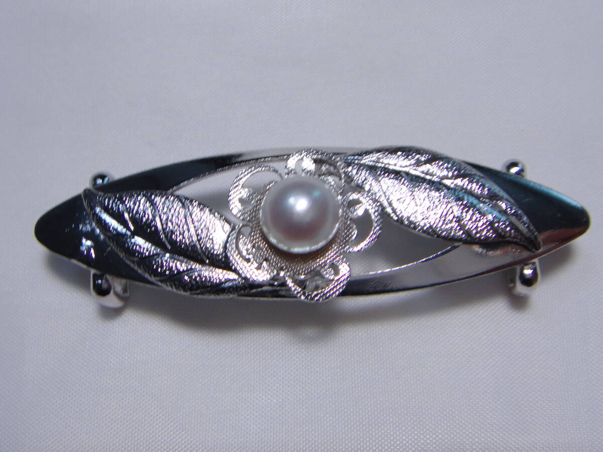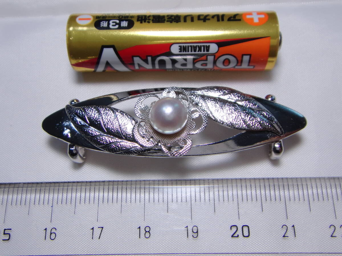 帯留め アコヤ真珠 本真珠 本パール 大玉! 約8㎜玉 ツヤテリ玉 良品 花モチーフ ヴィンテージ 和装小物 Y566