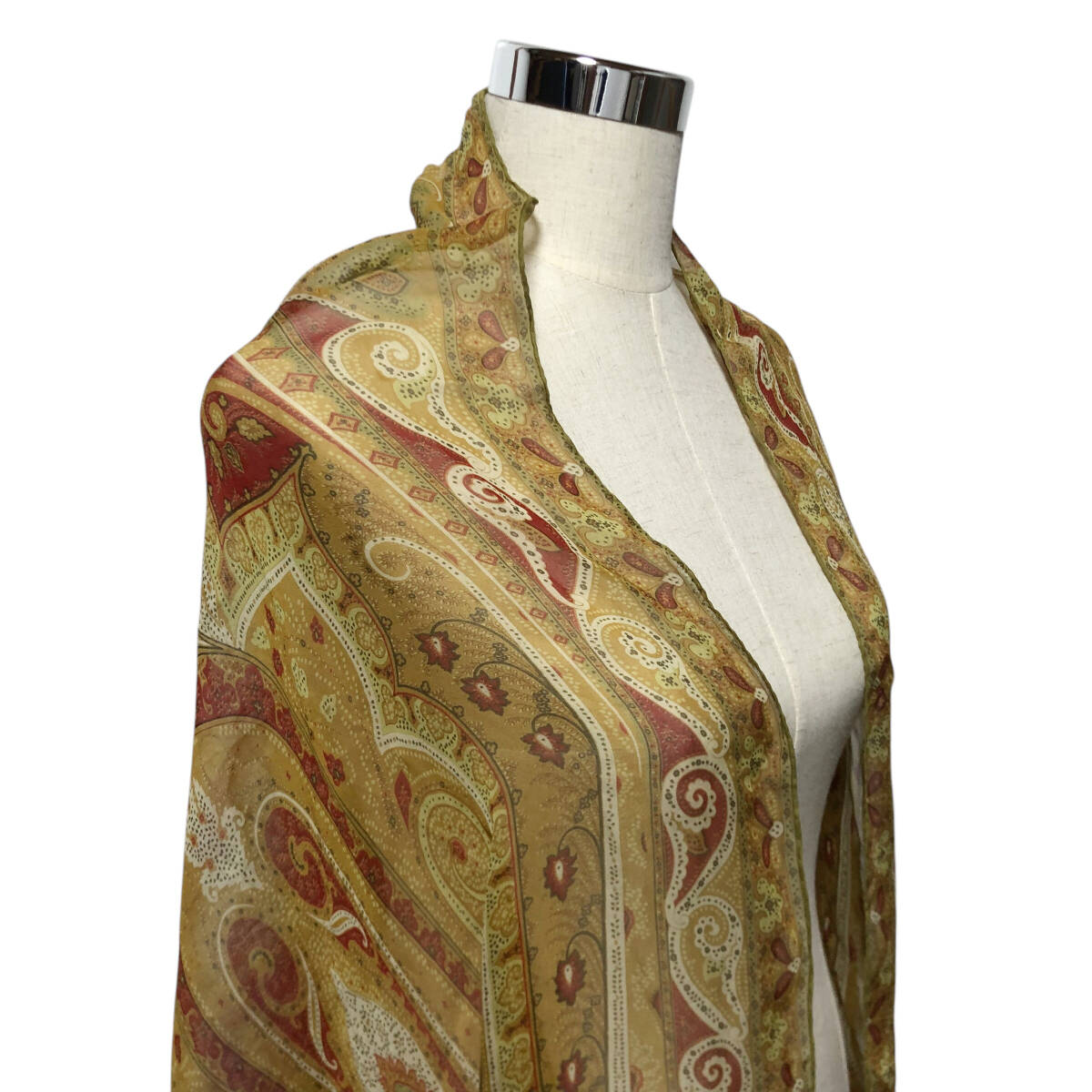 ETRO エトロ シルク100% 大判 ストール ショール スカーフ ペイズリー柄 イタリア製 マスタード系 ST1