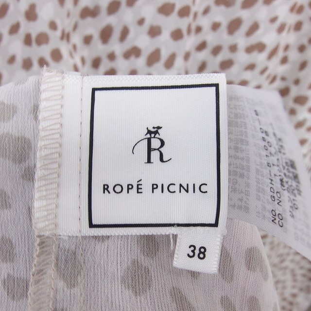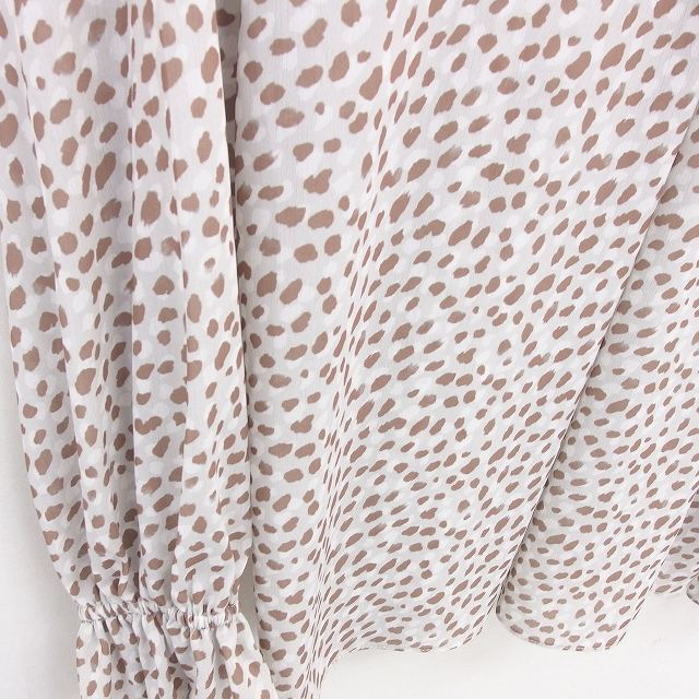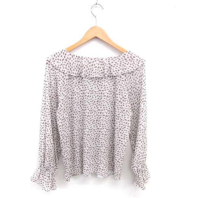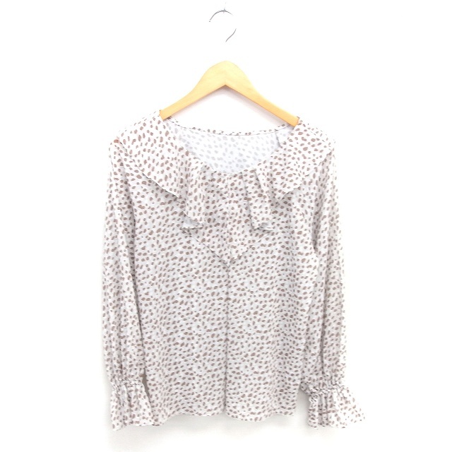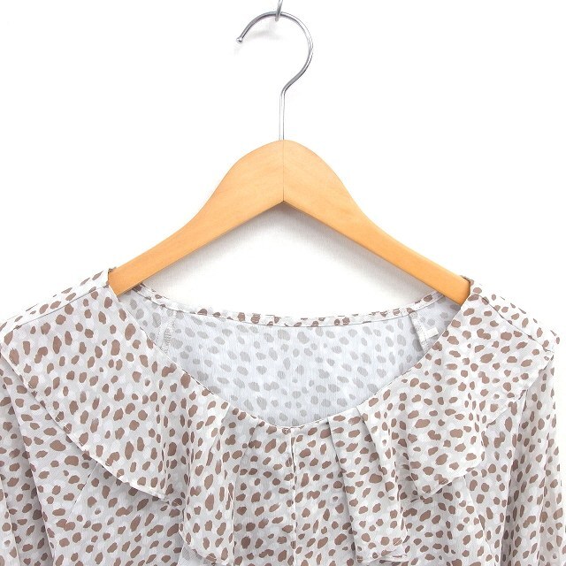 ロペピクニック ROPE Picnic ブラウス カットソー フリルカラー 総柄 透け感 プルオーバー 長袖 38 グレー ブラウン 茶 /TT レディース