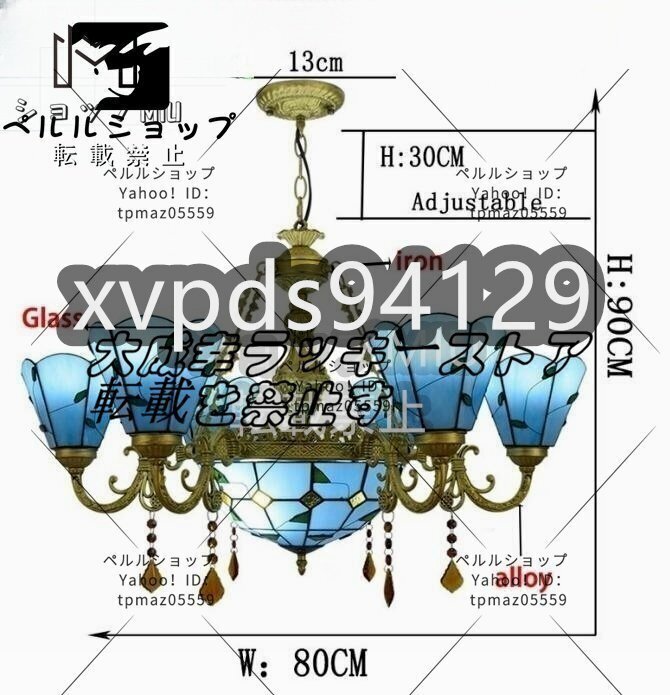 欧風シャンデリア ティファニーシャンデリア ステンドグラス リビングルーム/レストラン用ランプ 6灯 照明 ブルー