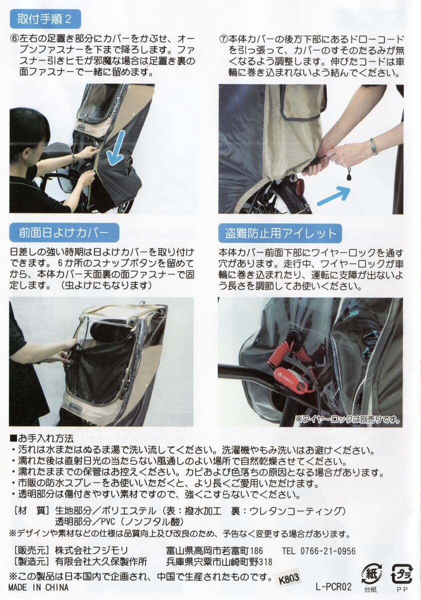 《LABOCLE》PREMIUM RAIN COVER リア(後部)チャイルドシート用 L-PCR02 〈色→茶色〉