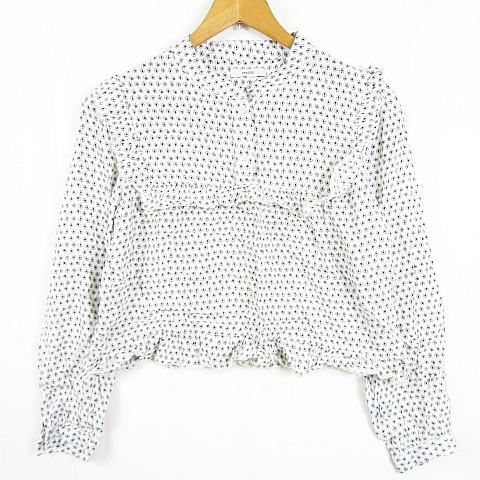 ミスティック mystic フリル ブラウス 長袖 レーヨン F ホワイト 総柄 kz11195 レディース