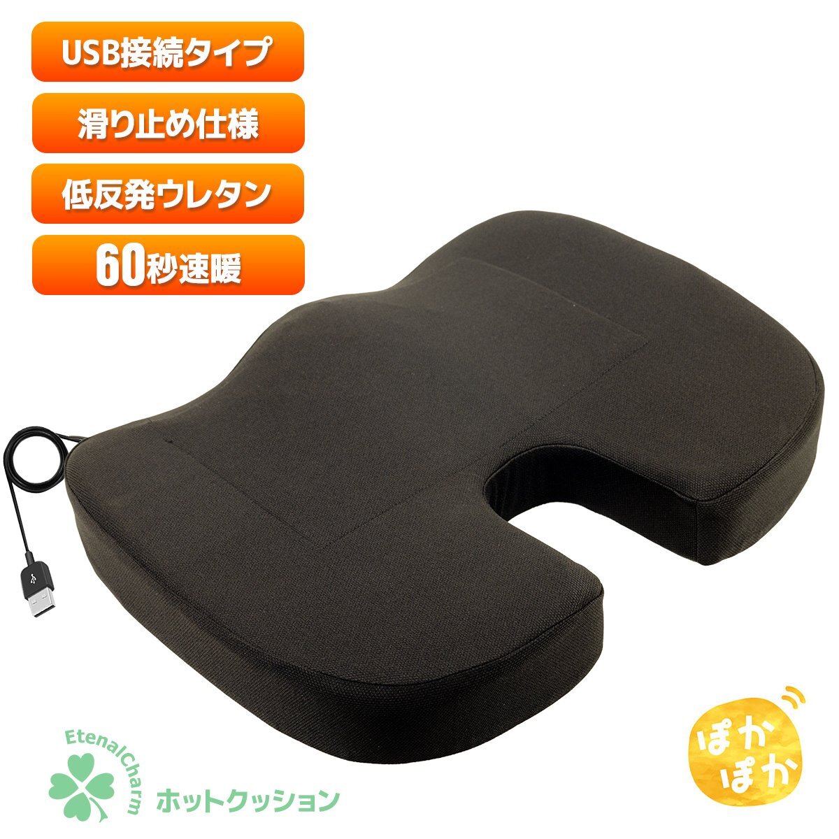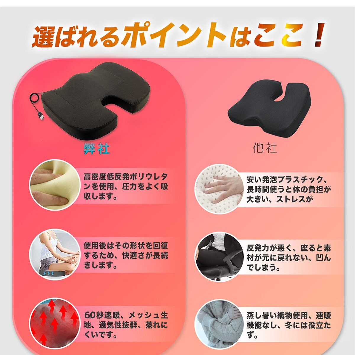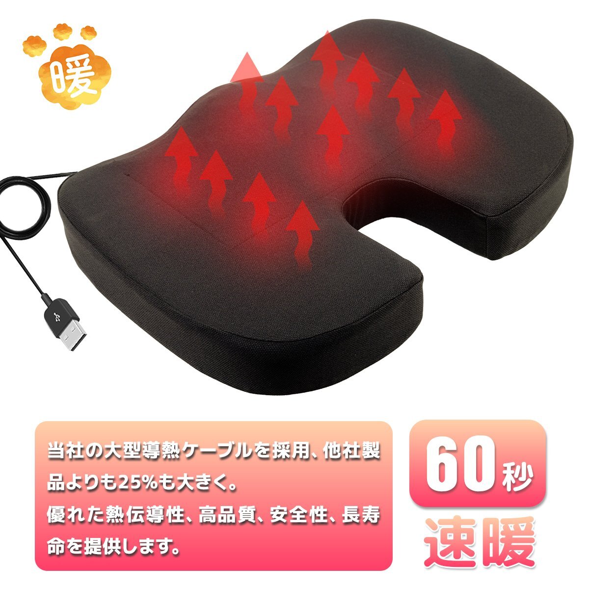 【送料無料】60秒即暖 ヒートクッション 凹型 厚さ70mm 厚地ホットクッション USB接続タイプ 電熱 電気マット 椅子用低反発クッション