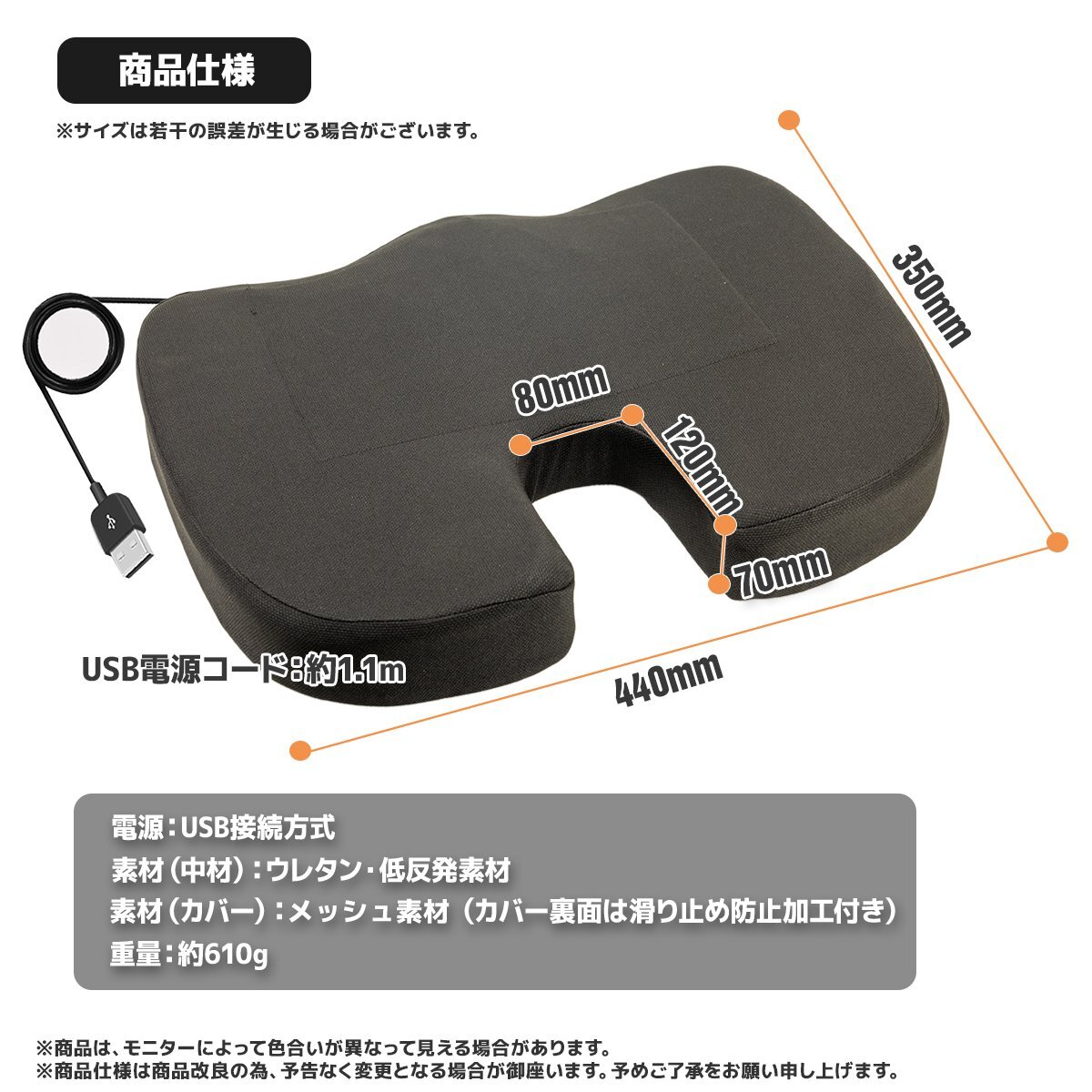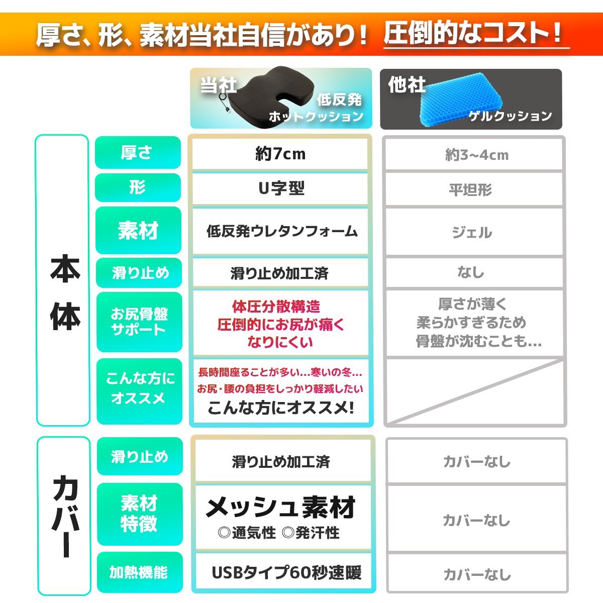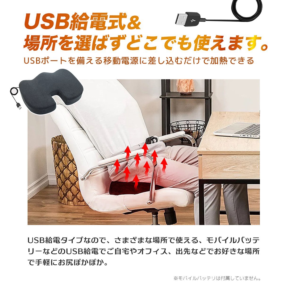 【送料無料】60秒即暖 ヒートクッション 凹型 厚さ70mm 厚地ホットクッション USB接続タイプ 電熱 電気マット 椅子用低反発クッション