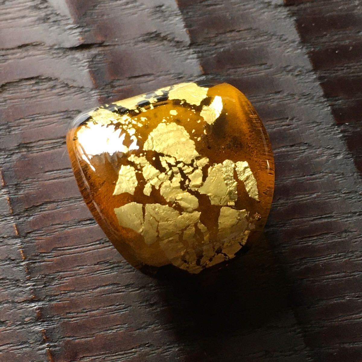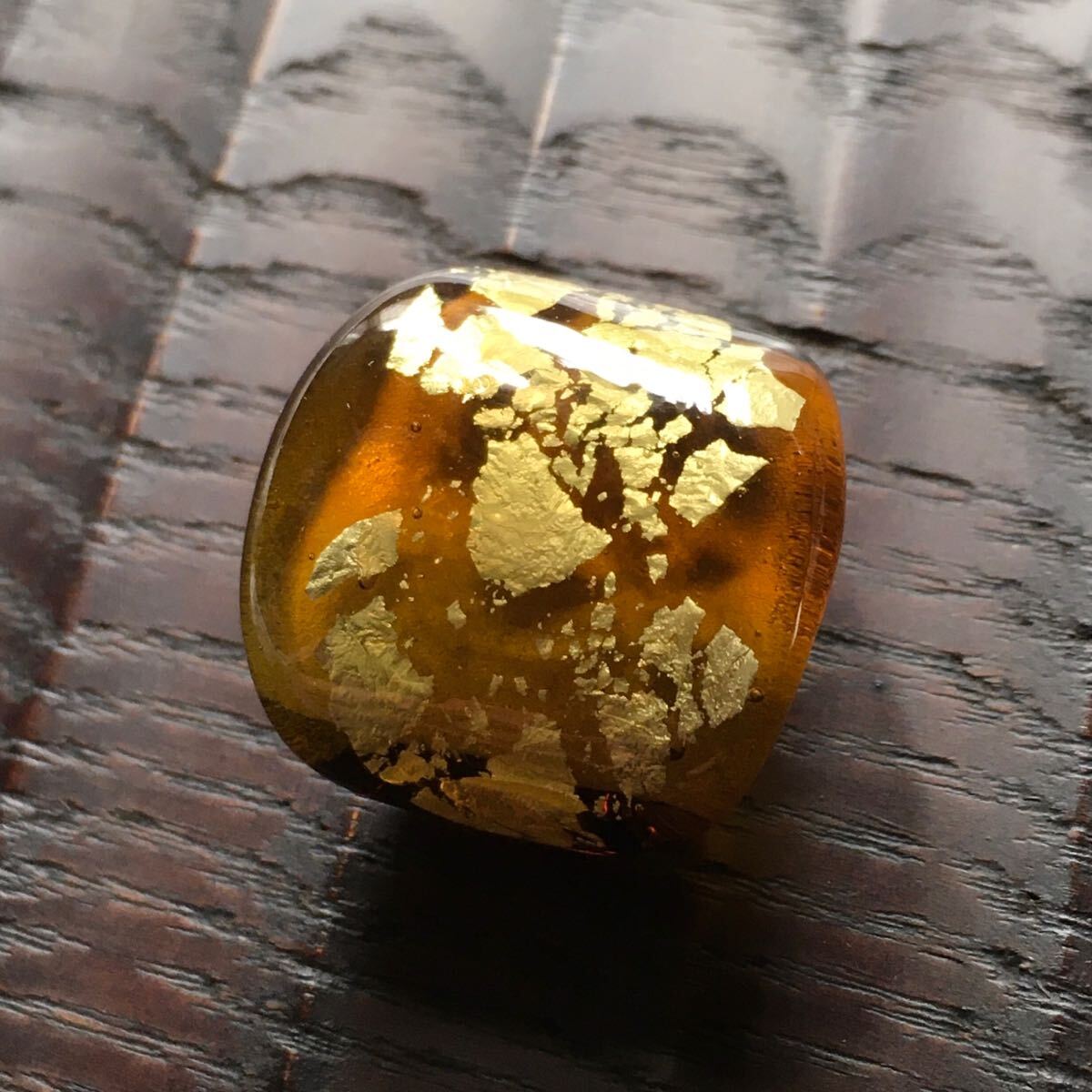 ガラスは二層になっていて、茶色いガラスの表面に銀箔を貼り合わせ、