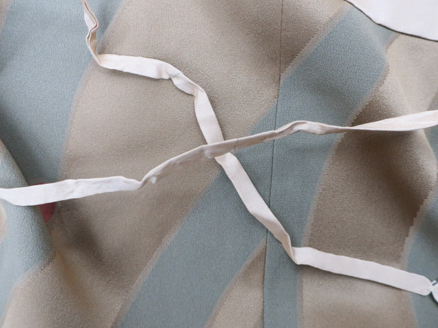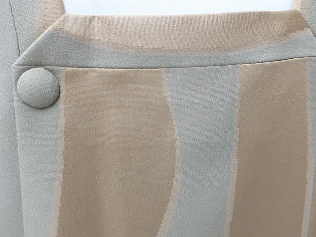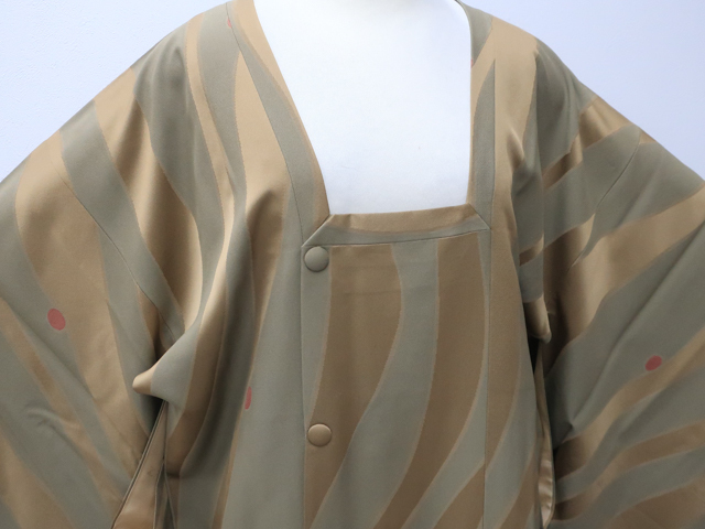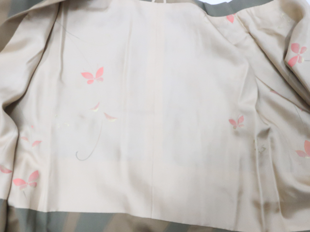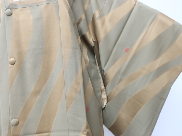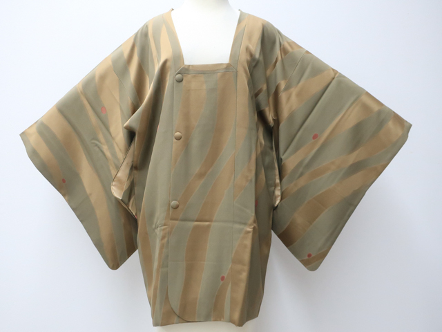 | リサイクル商品のため、羽裏に点汚れがございますがご着用いただけると存じます。 地色は 黄土・カーキです。 1枚目の画像が近いお色かと思われます。 素材は正絹です。 |