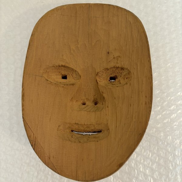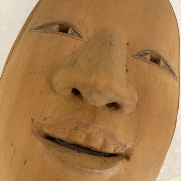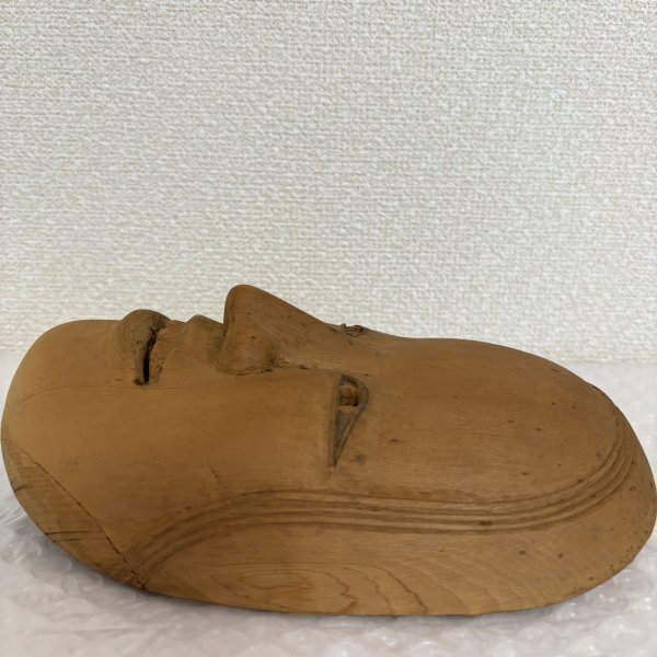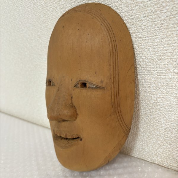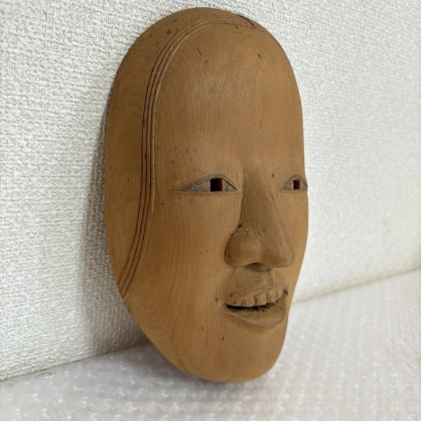 【 能面 】古美術 木製 能面 木彫り 女面 小面 狂言面 伝統芸能 未塗装 制作途中 銘無し 縦22cm ■ 山23三