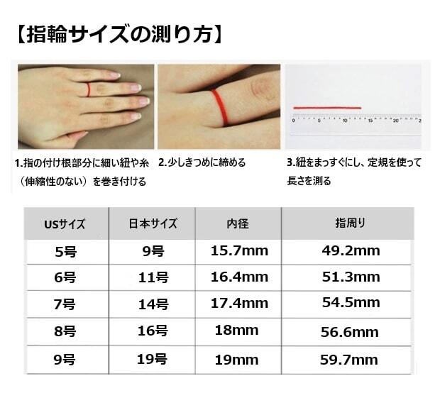 サイズ:US5号【日本9号相当】内径15.7mm、指周り49.2mm