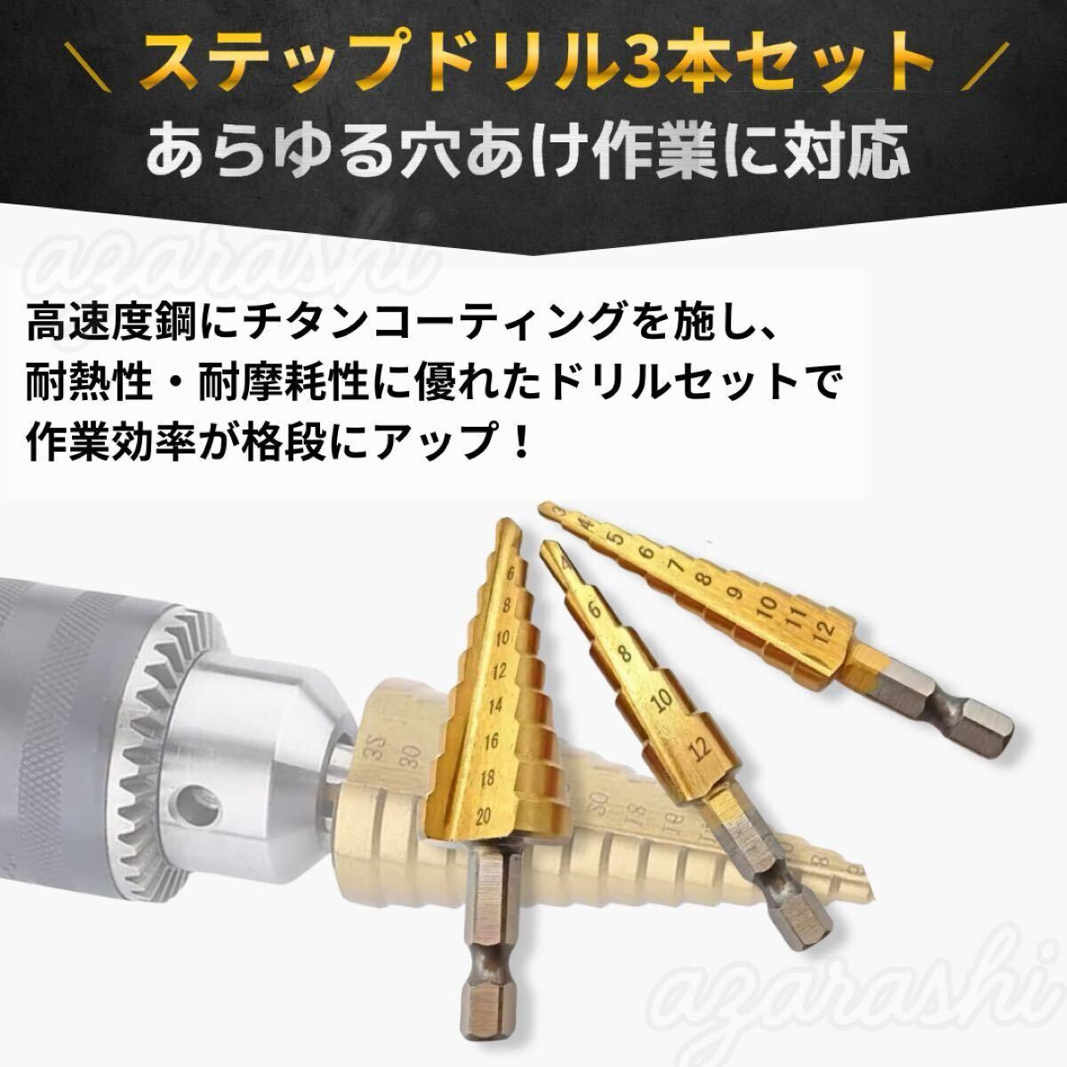 1本で複数サイズの穴あけが可能なドリルビットです。ビットの交換が不要なため、作業効率が向上します。