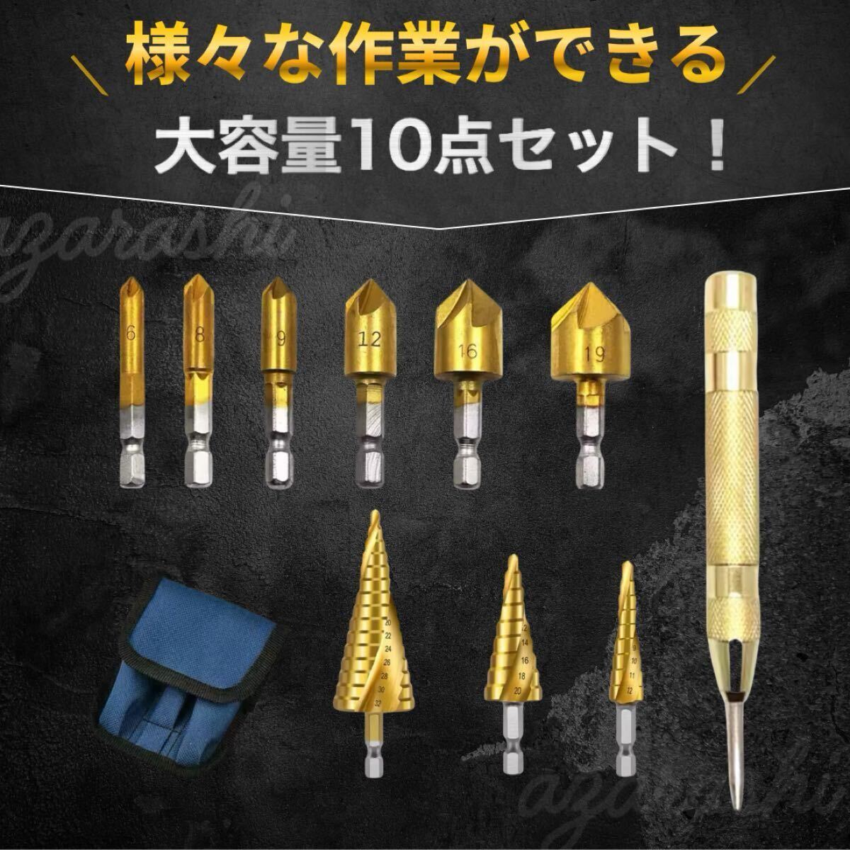 本製品は、さまざまな素材に対応した穴あけ・面取り・バリ取りが可能な便利な工具セットです。