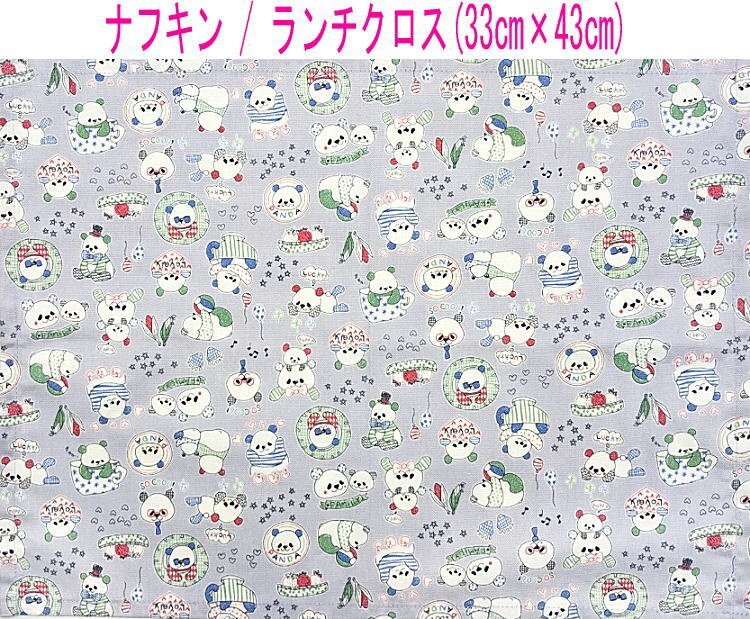 ナフキン・ランチクロス(33cm×43cm)長方形【パンダファミリー柄 グレー】ランチマット ランチョンマット 日本製 ぱんだ アニマル