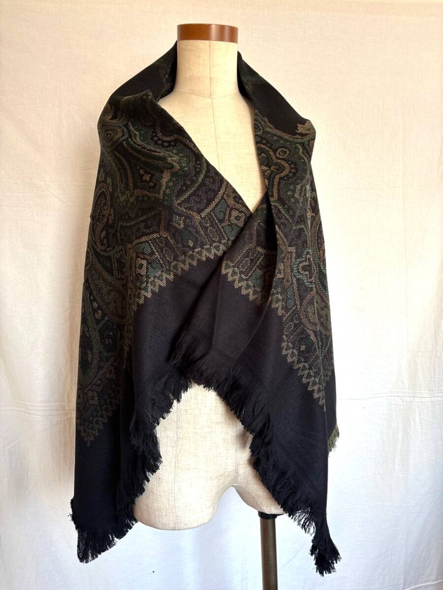 0001★新品*ショール*黒*正方形*ストール*長さ120cm*着物*和装*和柄*和服*和装小物*レトロ*アンティーク*レディース★