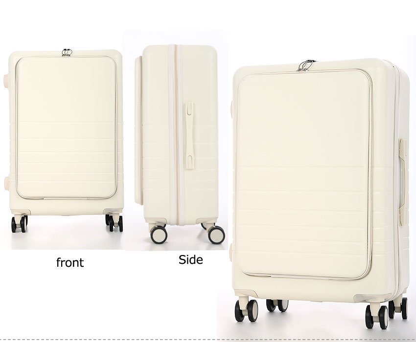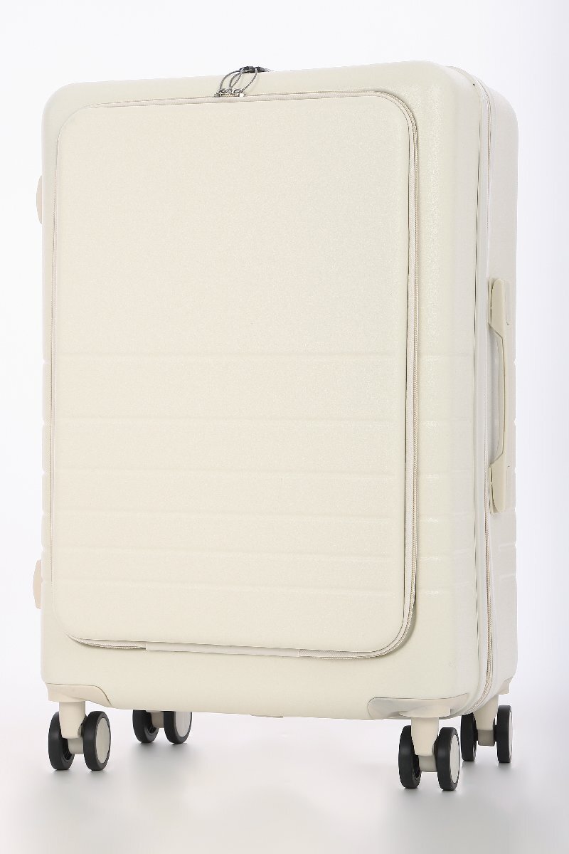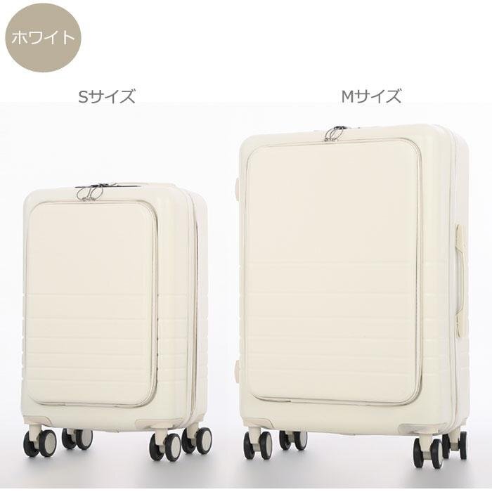 スーツケースDie welt bridge前ポケット軽量衝撃性強い大容量フロントポケットカップホルダー付きUSBポート多収納旅行出張(M)ホワイト