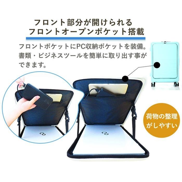 特徴前ポケット、軽量、衝撃性、 大容量、 フロントポケット、カップホルダー付き、 USBポート、多収納ポケット、旅行、出張、 ファスナー、静音、 TSAロック付、 旅行出張(M)サイズ
