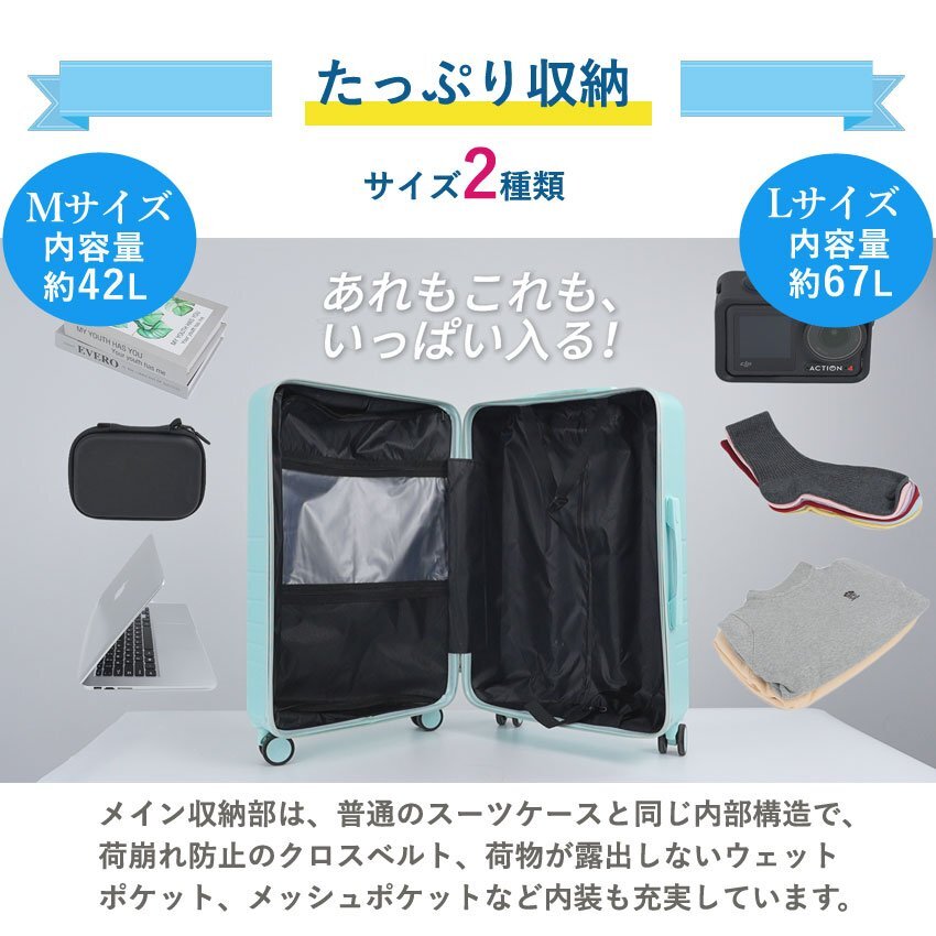 機内持ち込みに対応し、Mサイズは4~7泊程度の旅行に適したサイズで、ビジネスシーンにも活躍しています。