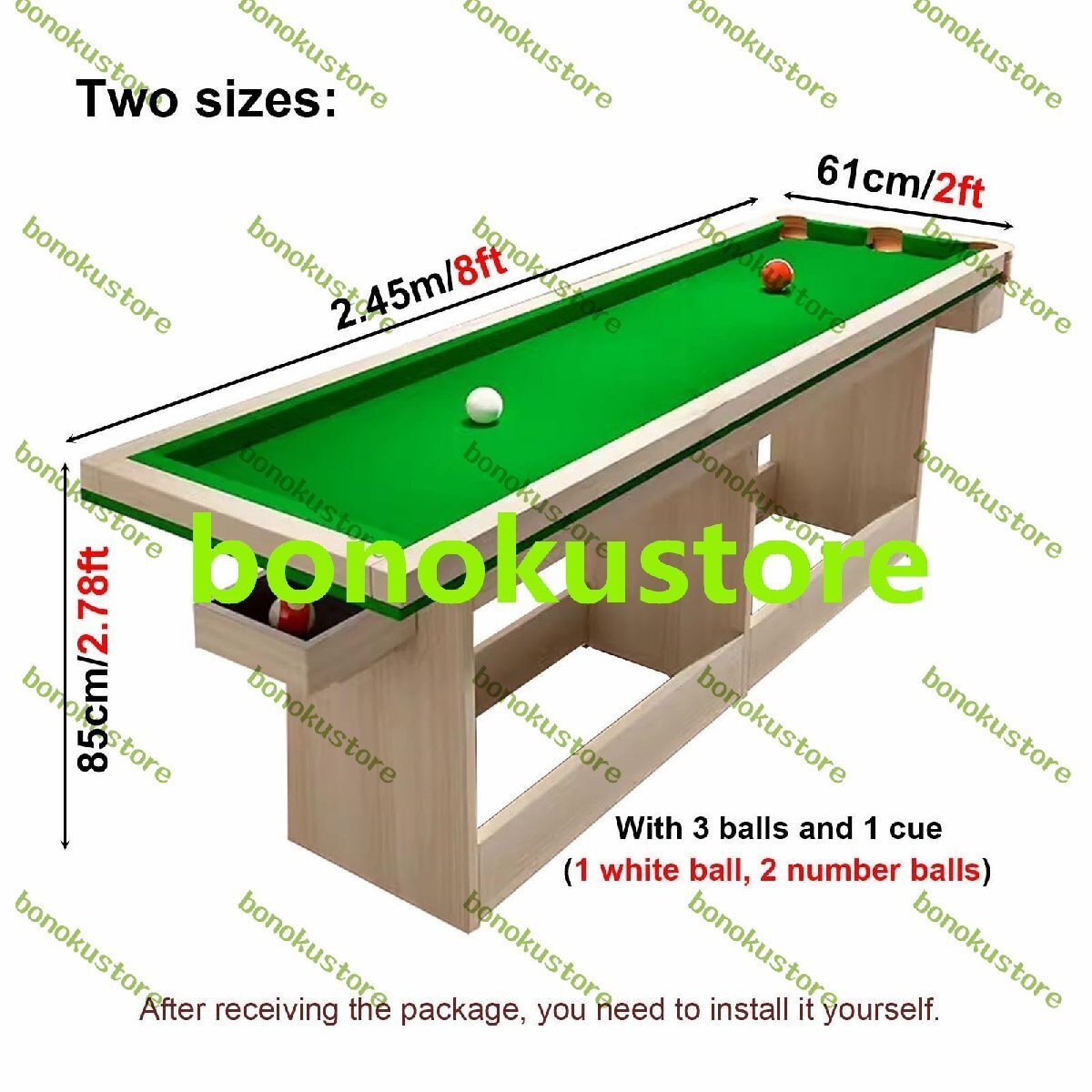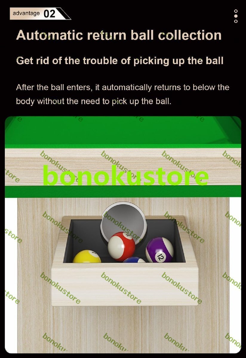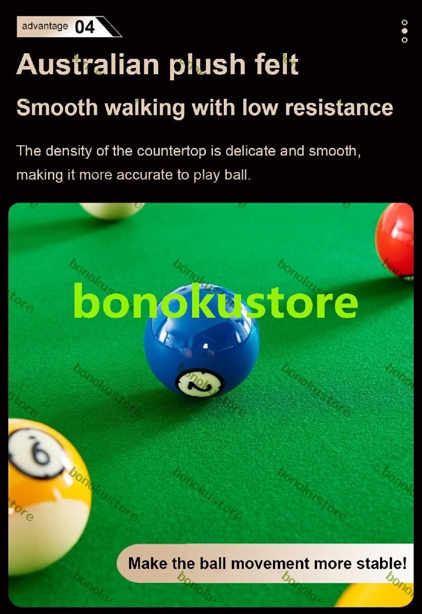 自宅で打撃スキルを練習する方法がまだわかりませんか?私たちのビリヤードトレーニングテーブルは、打撃スキルを練習するのに最適です。厚いMDFで作られたビリヤードテーブルは非常に頑丈です。 ほぼすべてのパーツが組み立てられており、すぐに遊ぶことができます。当社のビリヤード台セットには、必要なゲームアクセサリーがすべて揃っており、耐久性のある素材により、このビリヤード台は長期間使用できます。標準的なビリヤード台と同じように、本物のフェルトのカバーとクッションを備えたコンパクトなデザインでスペースを節約します。このビリヤードトレーニングテーブルは、リビングルーム、寝室、家庭用ゲームルーム、エンターテイメントルーム、地下室、ガレージに適しています。経験豊富なプレイヤーでも、ビリヤードを始めたばかりの方でも、ビリヤードテーブルを使って練習することができます。製品パラメータ。名前: ビリヤードトレーニングテーブルビリヤードテーブル素材: 高密度ボードテーブルトップ素材:ベルベットフェルトテーブル脚の材質:MDFメッシュバッグ素材:ナイロンネットサイズ: 2.45x0.61m/8x2フィート特徴: ポータブル、頑丈な構造、簡単に保管できます。梱包リスト:1 * ビリヤード台1 * テーブル脚1 * ビリヤードキュー+ボール知らせ:手動測定のため、サイズの若干の誤差はご了承ください。詳細は実際に届いた商品をご確認ください。