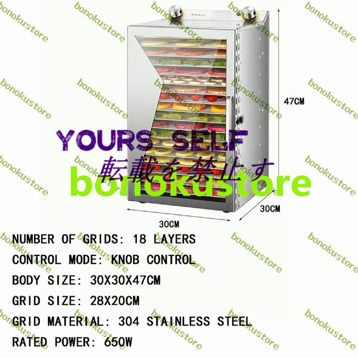 名前: 商業食品乾燥機 材質: ステンレス鋼 グリッド数: 18 レイヤー 電圧: 110V-220V 電力: 650W 温度調整:30~90℃ 本体サイズ:30×30×47cm グリッドサイズ: 28x20cm パッケージ: 食品乾燥機×1