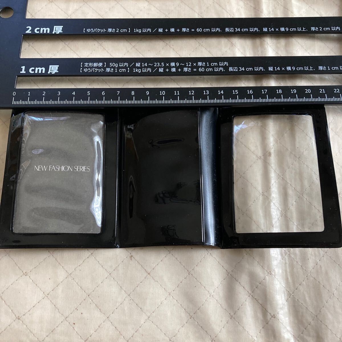 黒 で3つ折 、ビニール製 です。